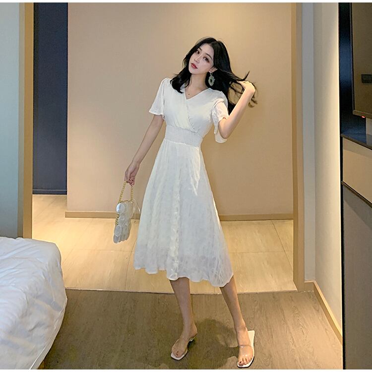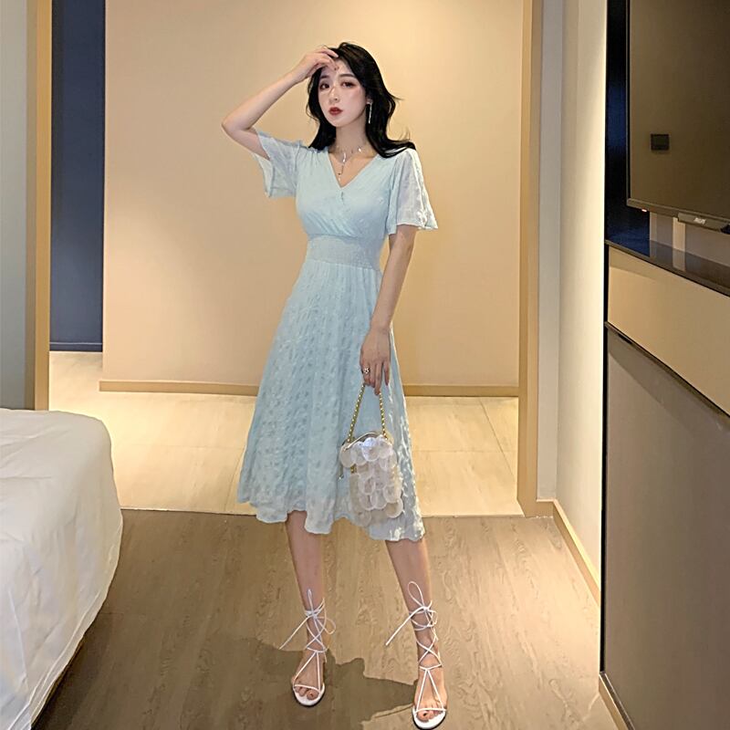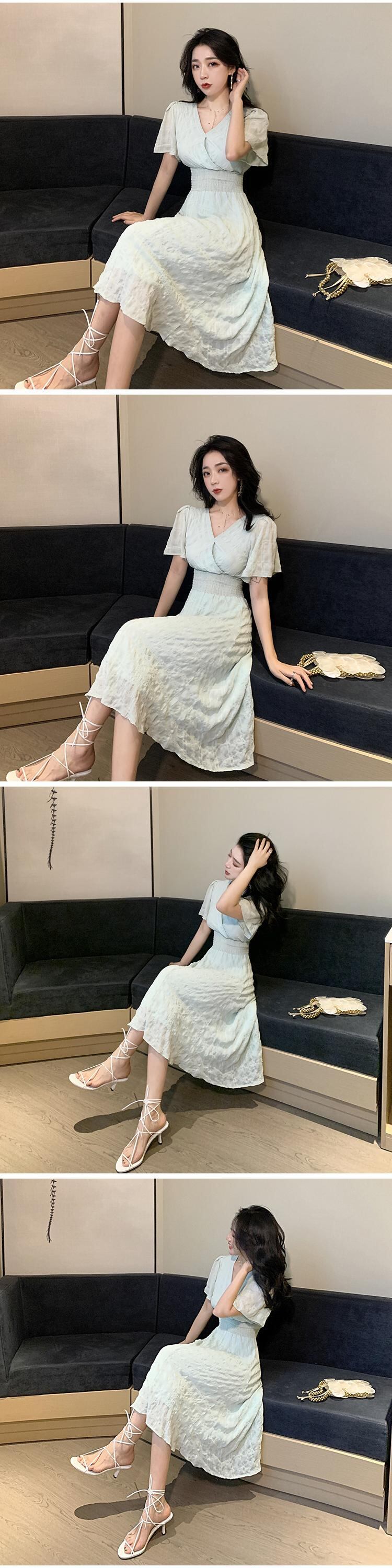 フレンチレトロウエストウエストスリミング半袖ワンピースプラチコドンちすみ初恋スカート女性サマードレス2020年人気スカート 1号婦人88620333186