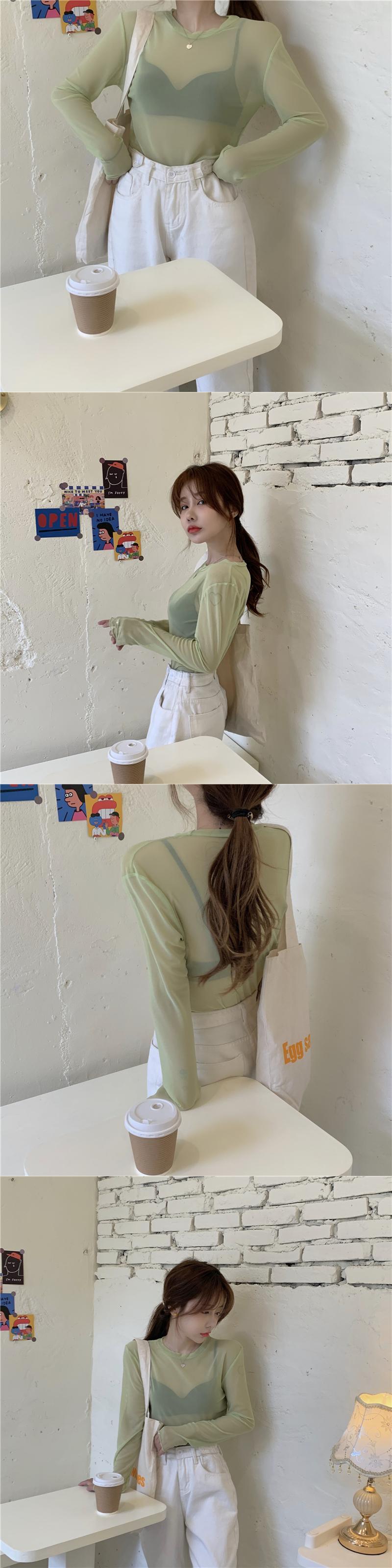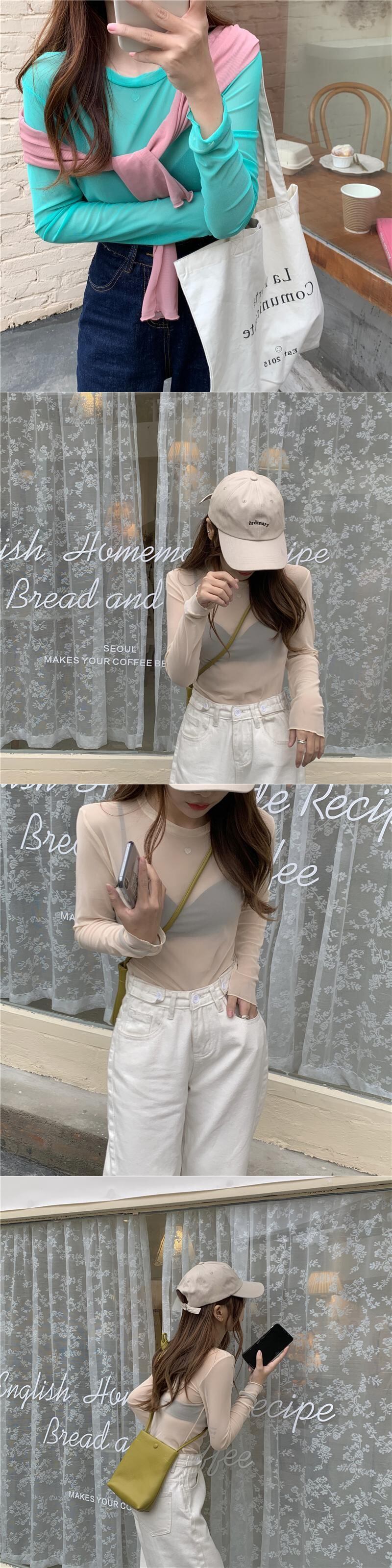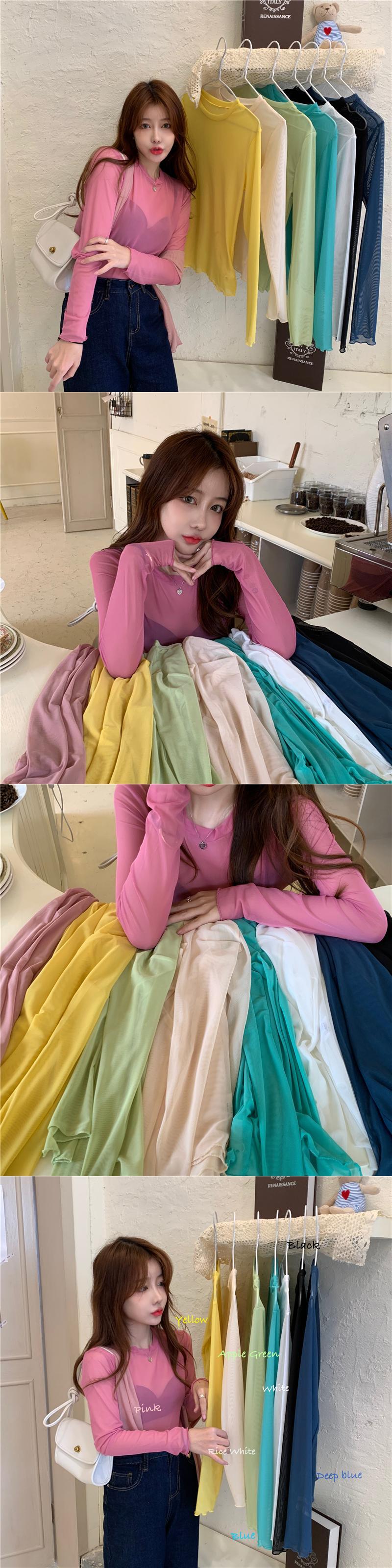 女性の夏服2020新しいヒーニャスタイルのキャンディーカラーのスリムな薄いボトミングシャツ、メッシュのインナー長袖Tシャツトップ 1号婦人43009740230