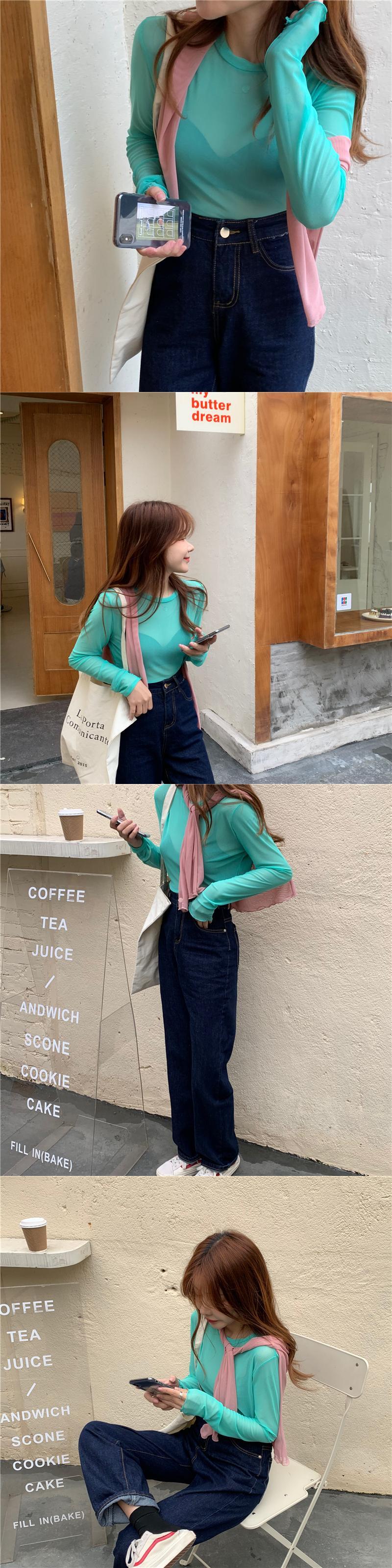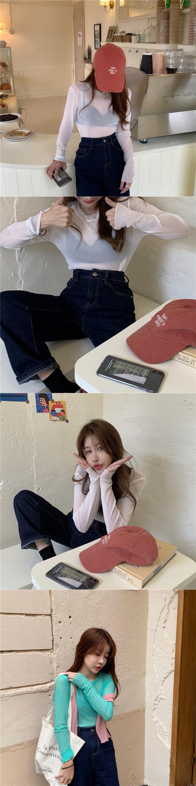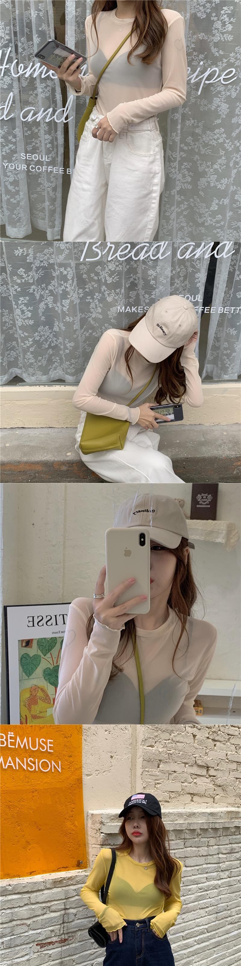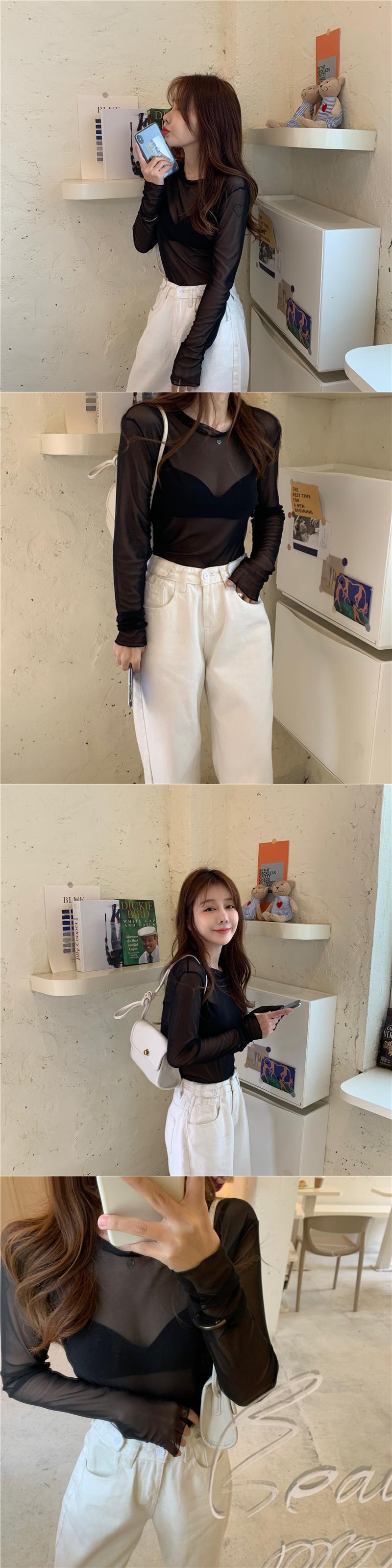女性の夏服2020新しいヒーニャスタイルのキャンディーカラーのスリムな薄いボトミングシャツ、メッシュのインナー長袖Tシャツトップ 1号婦人43009740230
