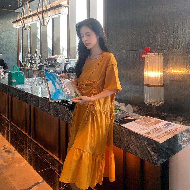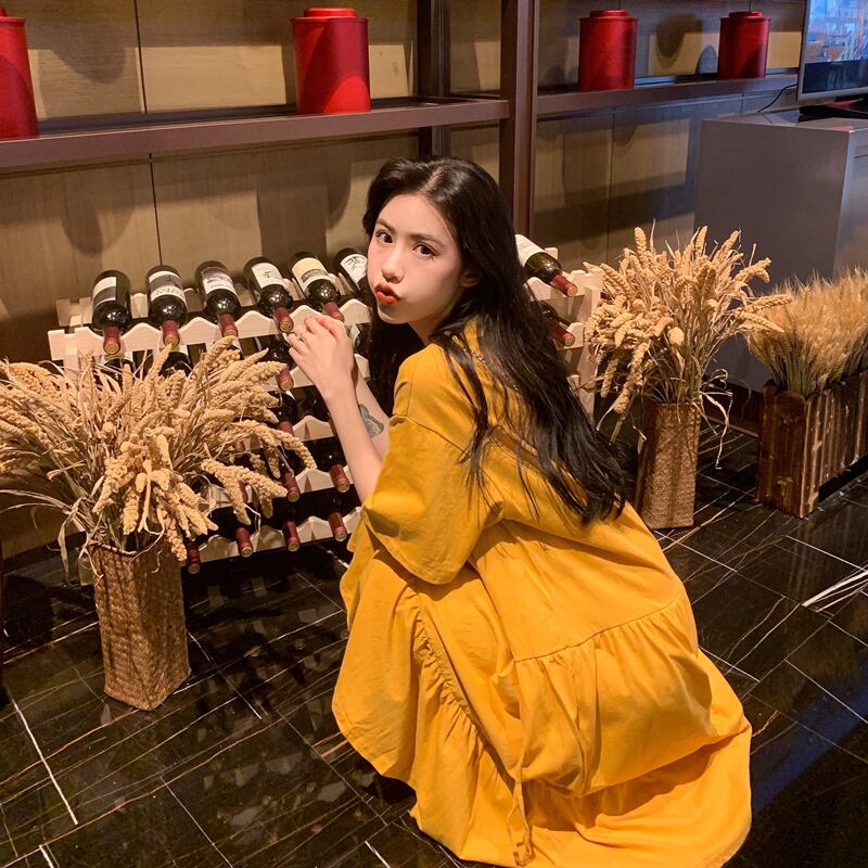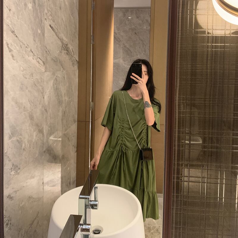 ベルフラワースカート初恋スカートセンシリーズ2020夏新作レディースルーズフォールドイレギュラー半袖ワンピース 1号婦人84204514318