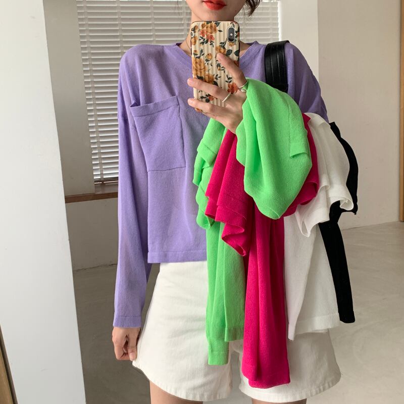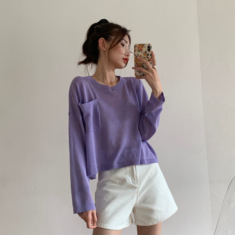 2020年夏の新しいルーズヘッジ薄い日焼け止めブラウスアイスシルク長袖ニットTシャツパープルトップ女性 1号婦人66089020522