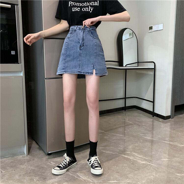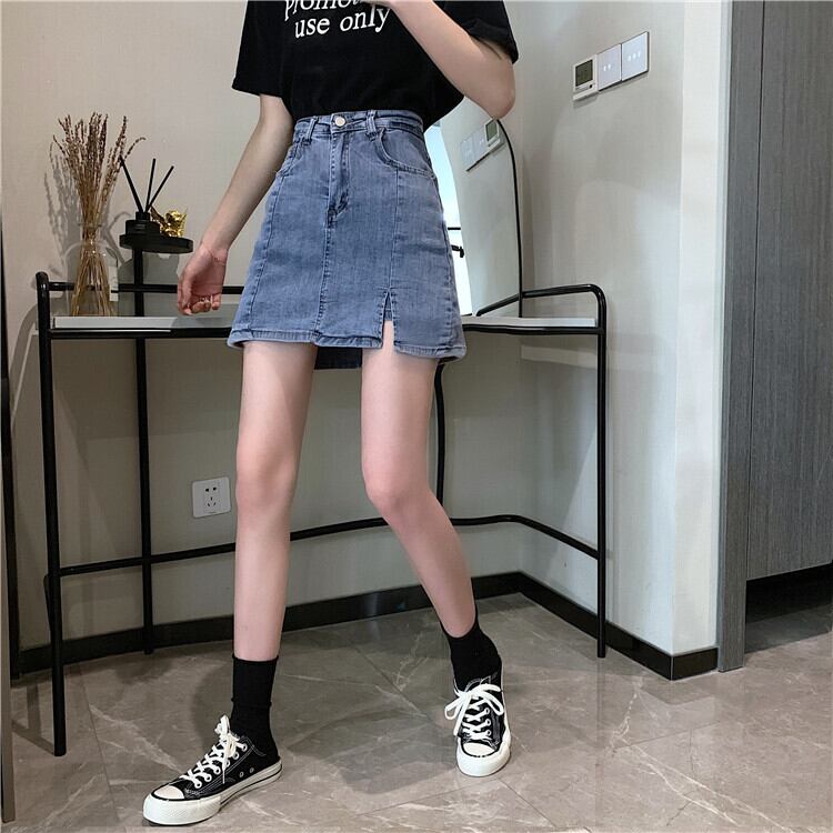 ウエストスリムAラインジーンズスカート夏新作女子学生レトロワイルドスプリットスカートパンツ 1号婦人22533213298