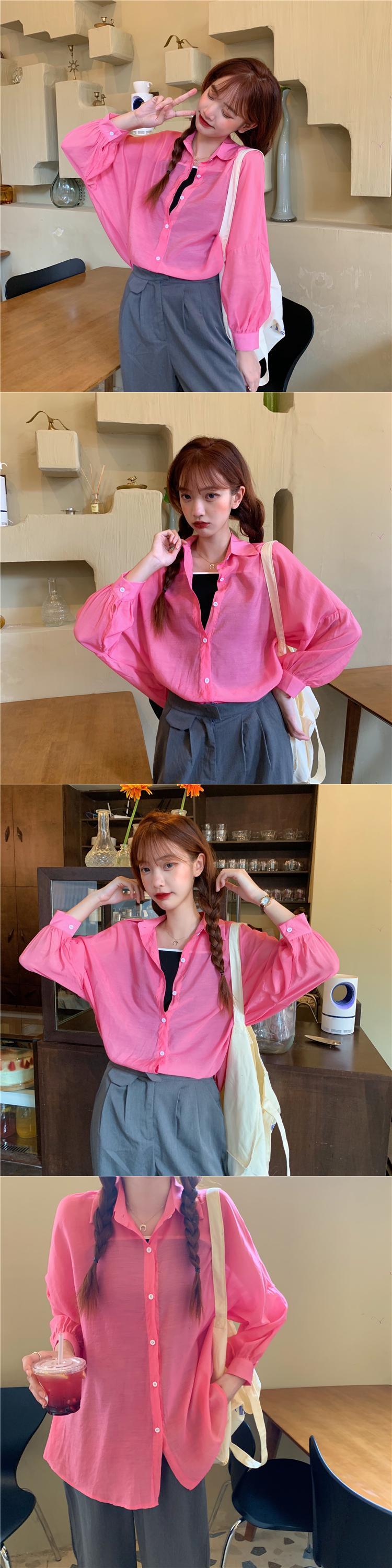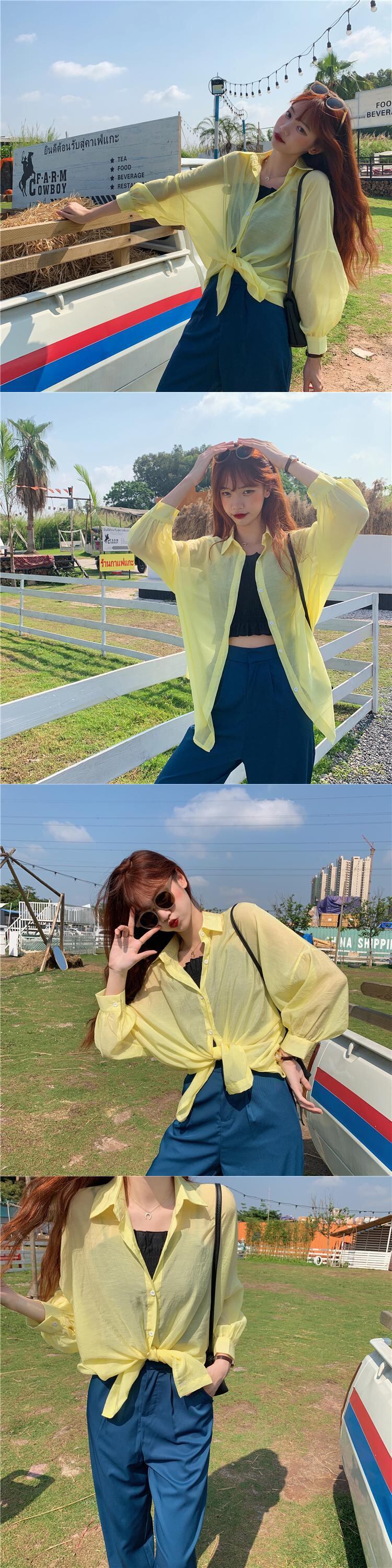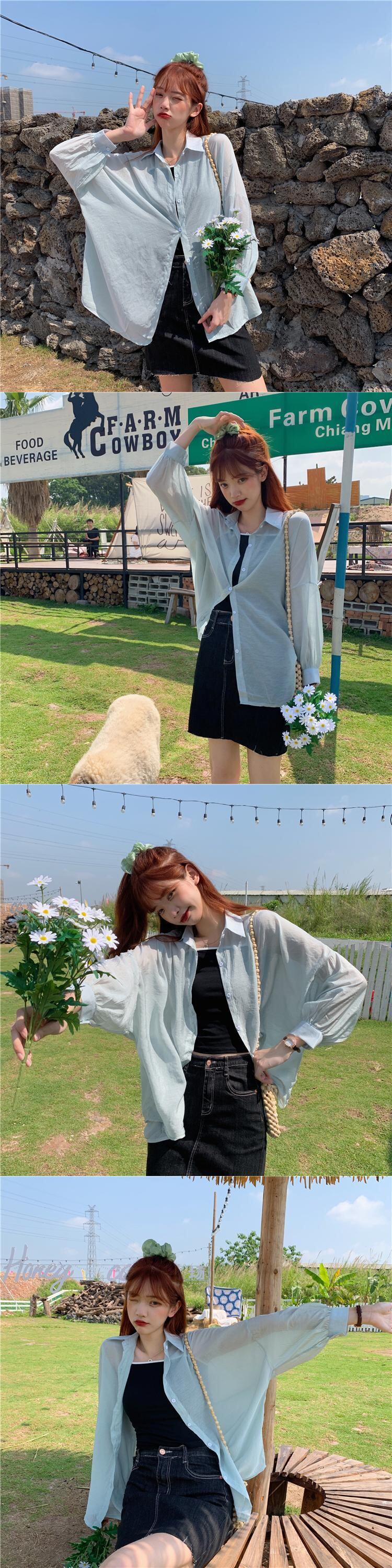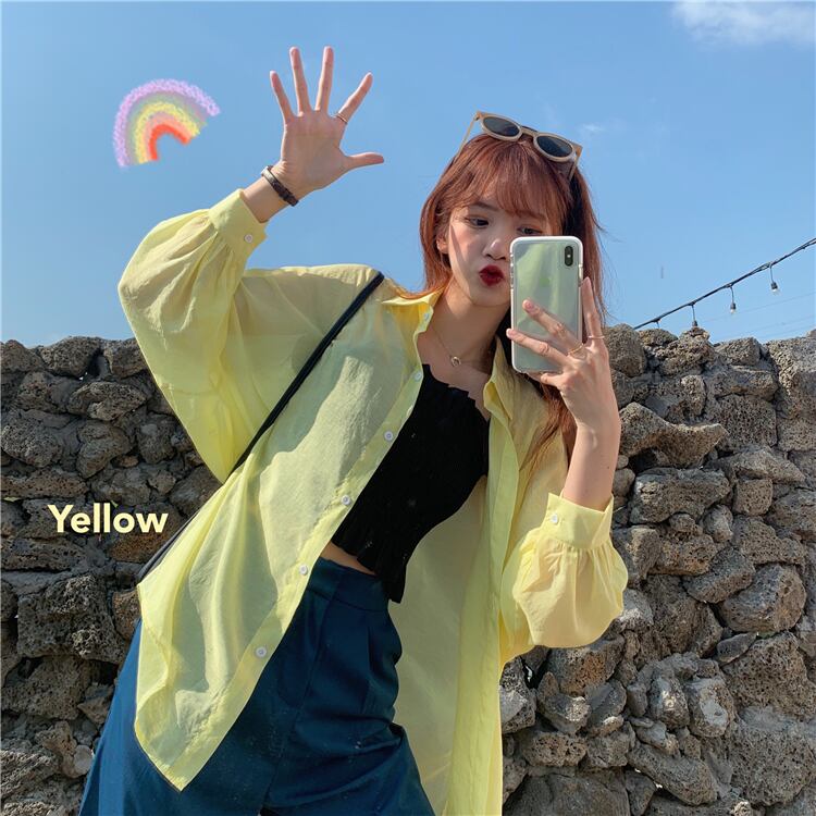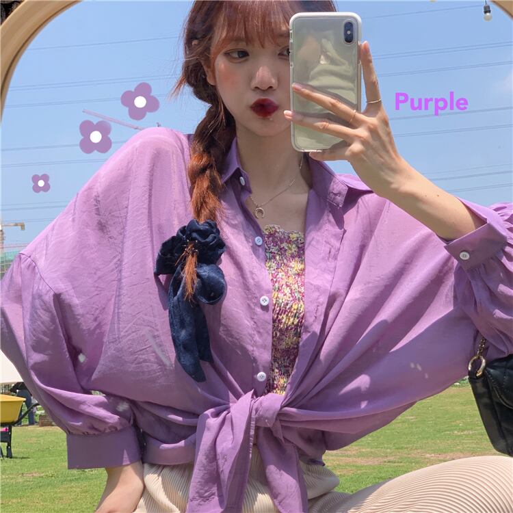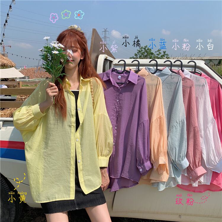 シャツデザインセンスニッチサマーニュー2020マイクロトランスペアレントパープルシャツルーズ長袖日焼け止めトップ 1号婦人25598089757