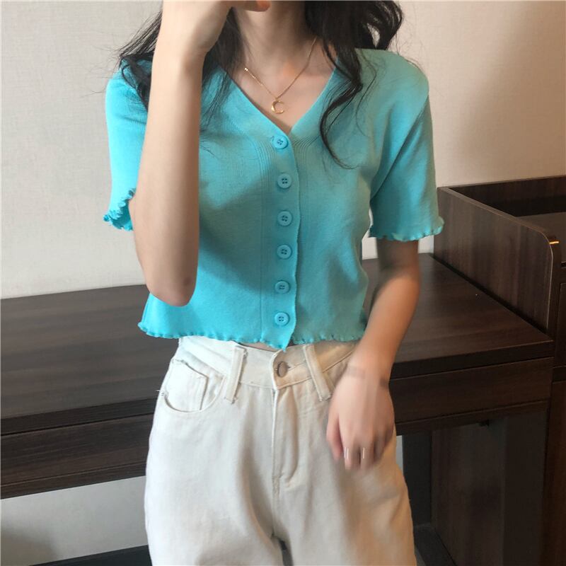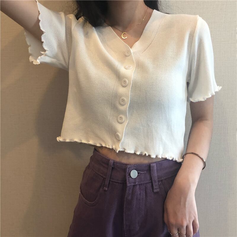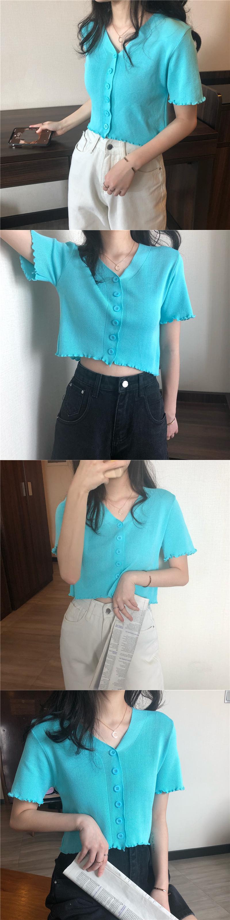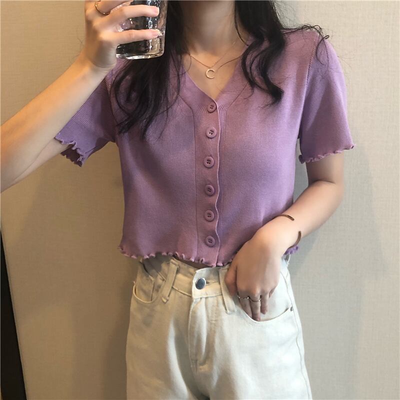 フランスのVネックショートニットカーディガン、木製の耳付き女性の2020年夏の新しいアウタールーズ半袖パープルトップ 1号婦人32863139150