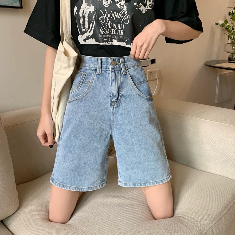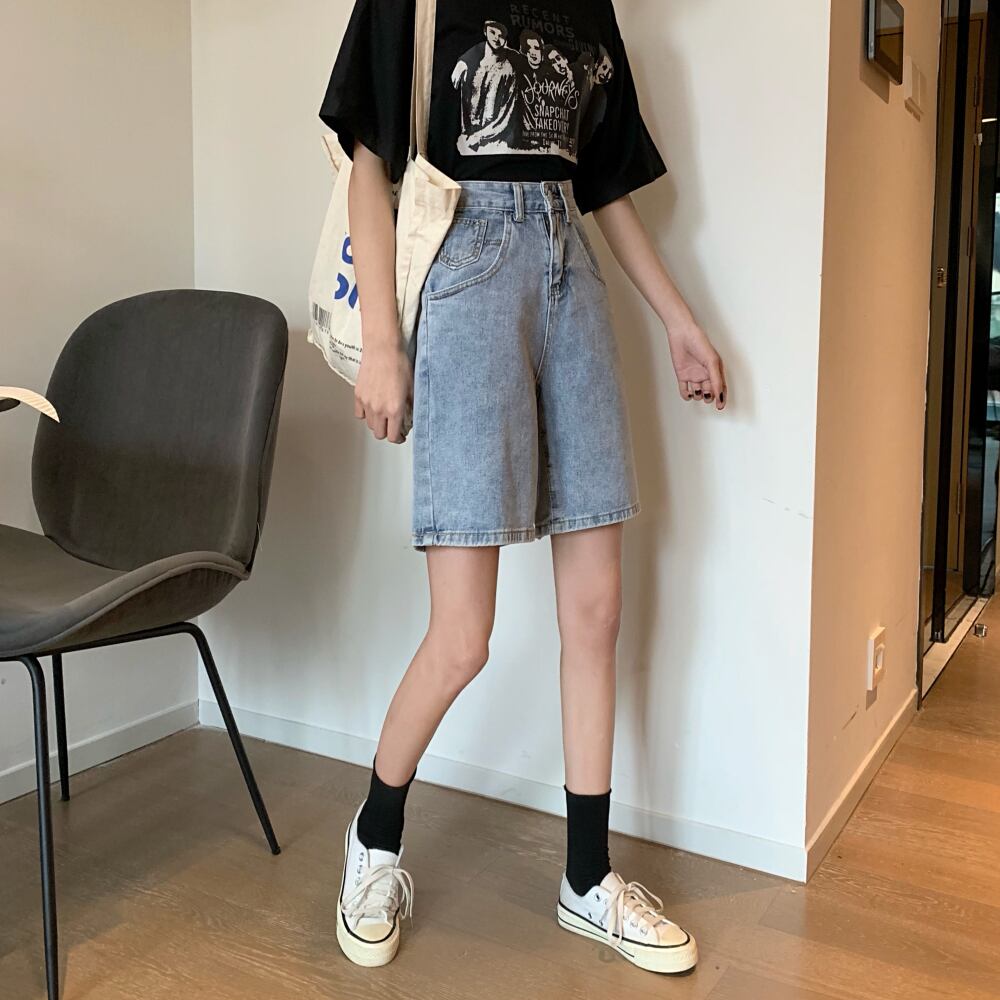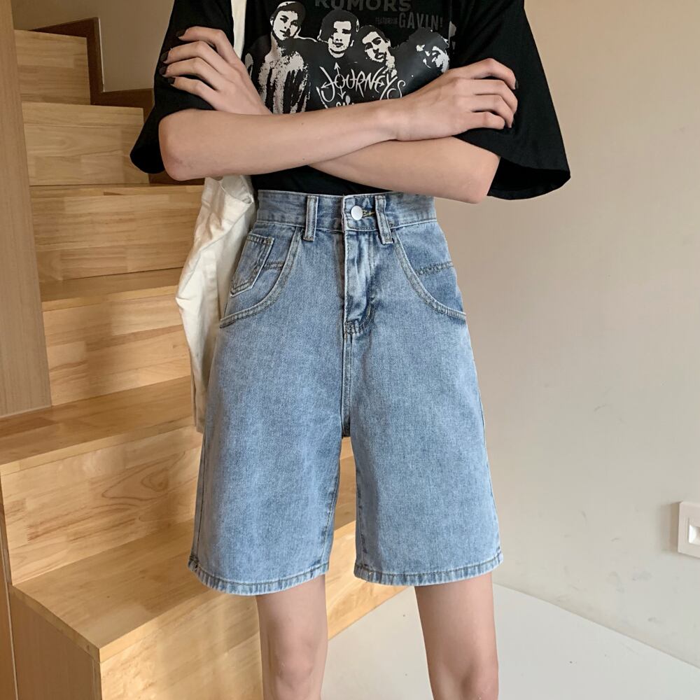 2020年夏新作レディースハイウエストスリムデニムショーツルーズワイドレッグパンツストレートカジュアル5点パンツ 1号婦人99422042055