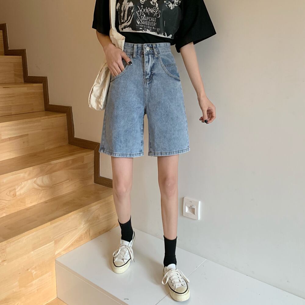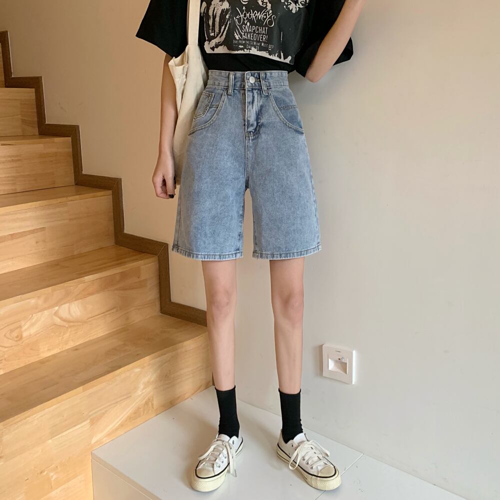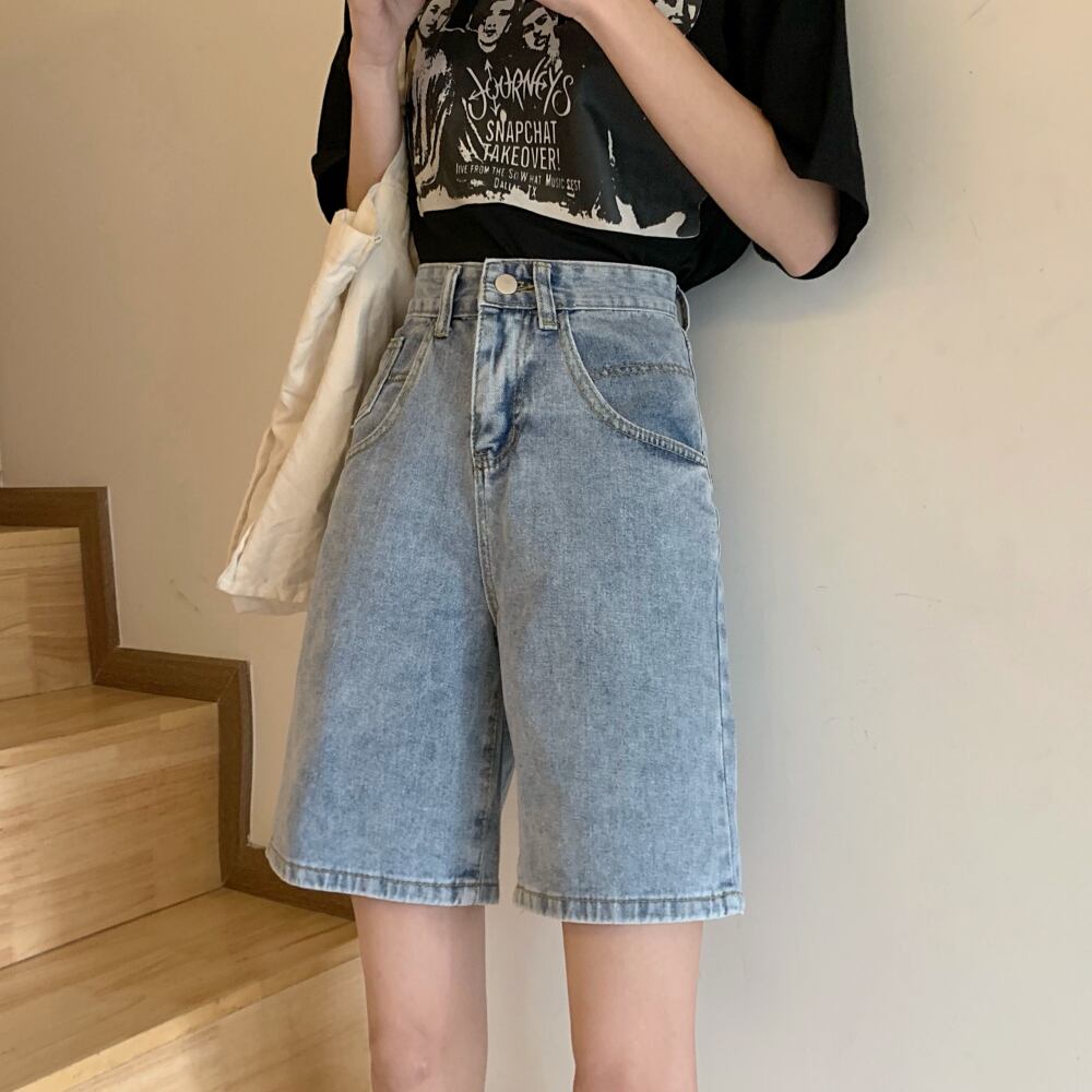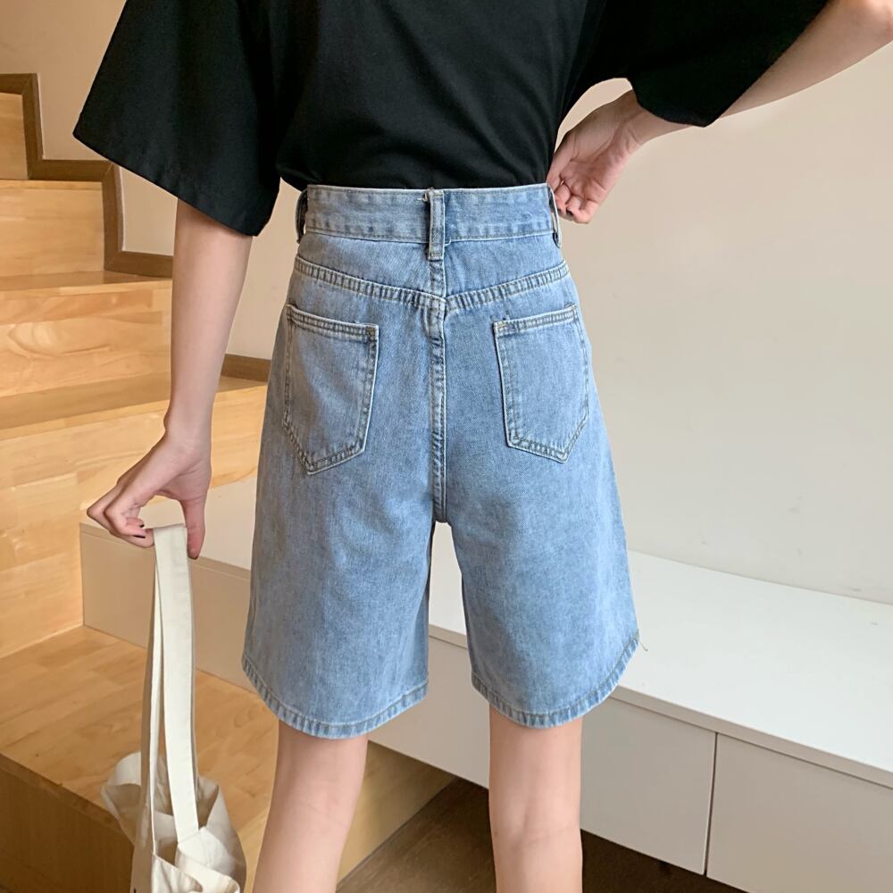 2020年夏新作レディースハイウエストスリムデニムショーツルーズワイドレッグパンツストレートカジュアル5点パンツ 1号婦人99422042055