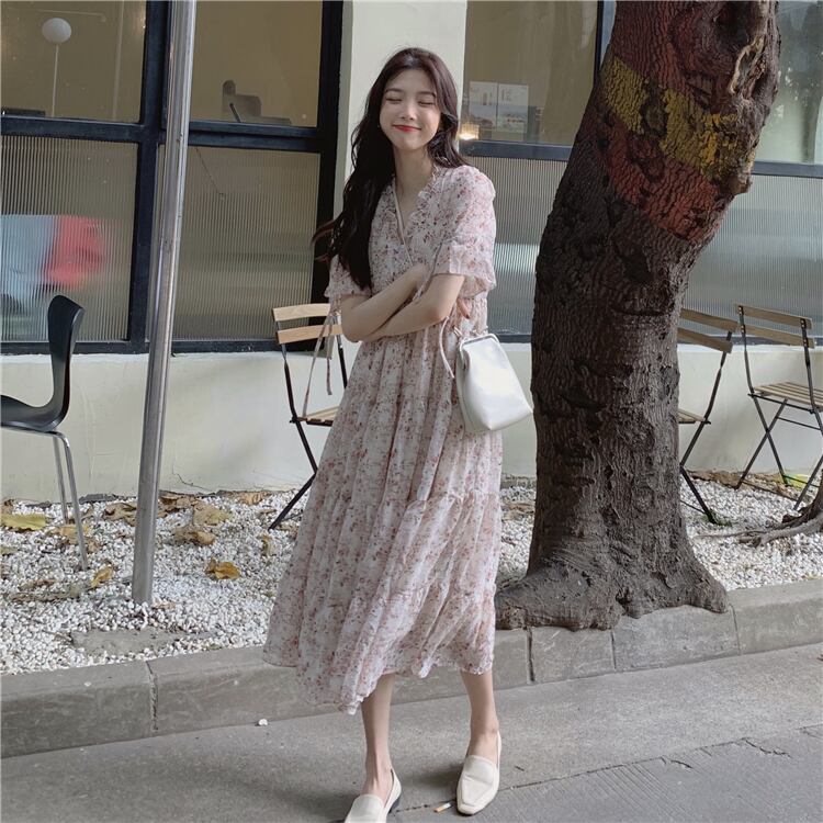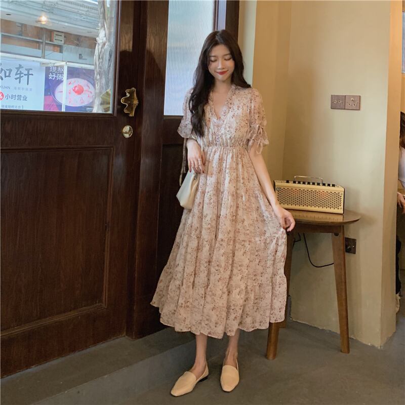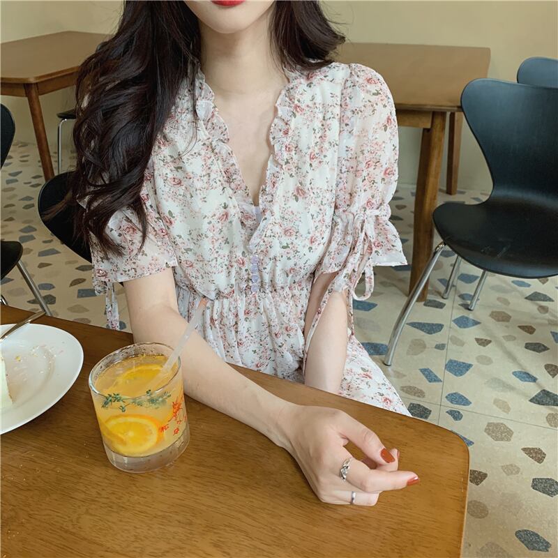 スカートの女性2020年夏の新しい穏やかな風フローラルレースアップウエストスリミング気質ミドル丈オーバーザニードレス 1号婦人94697497943