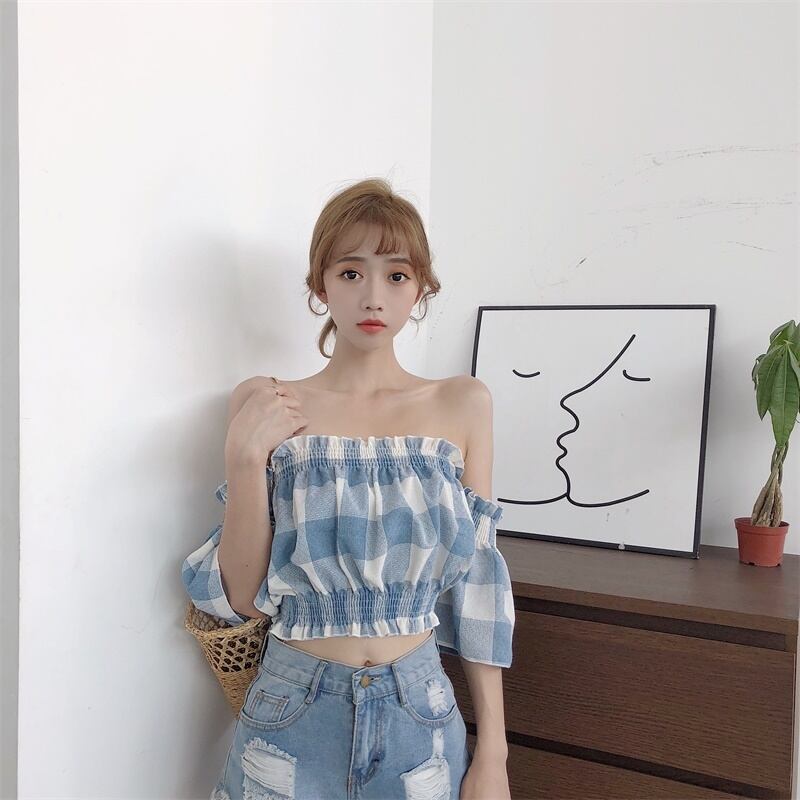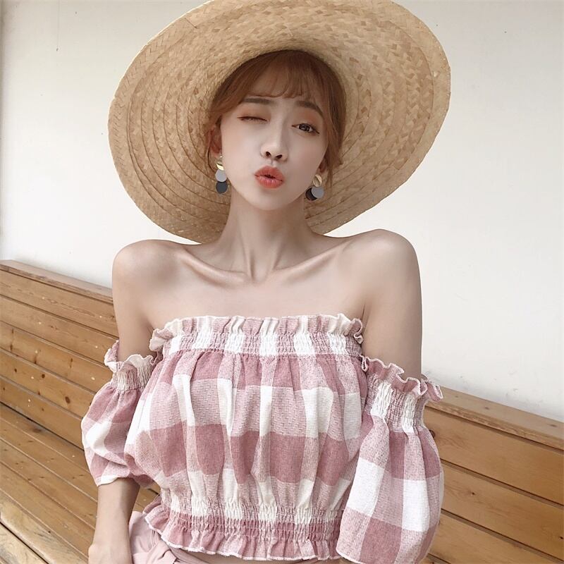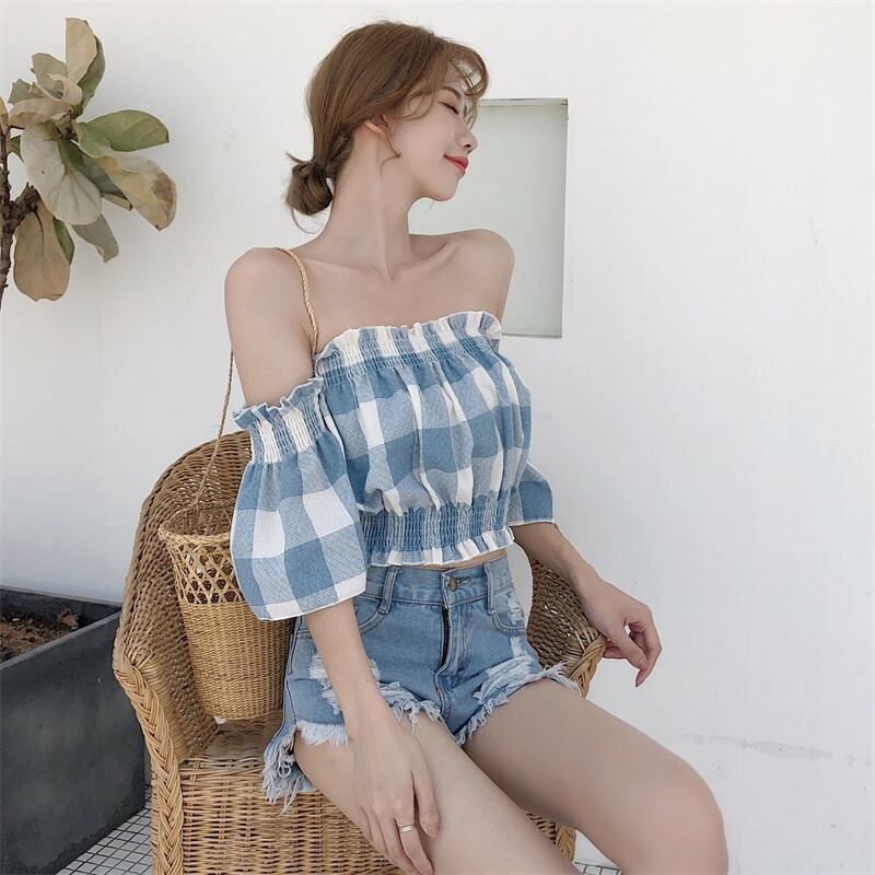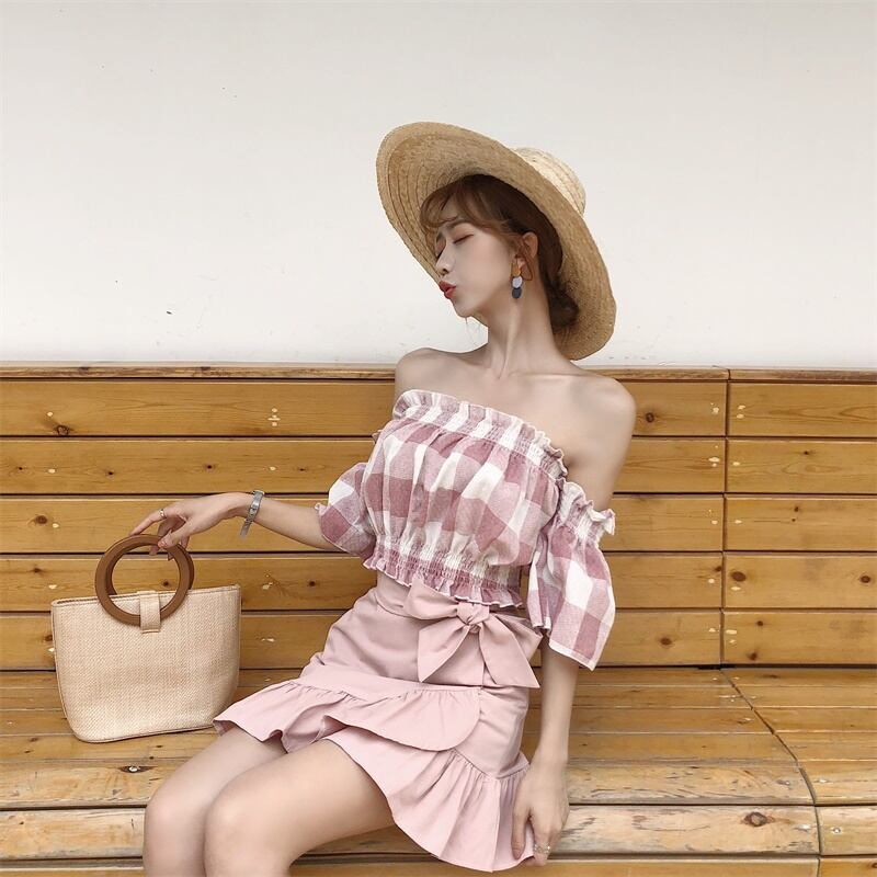 サマー格子柄ドレス シフォンシャツ 夏物 オフショルダー 1号婦人70528719161