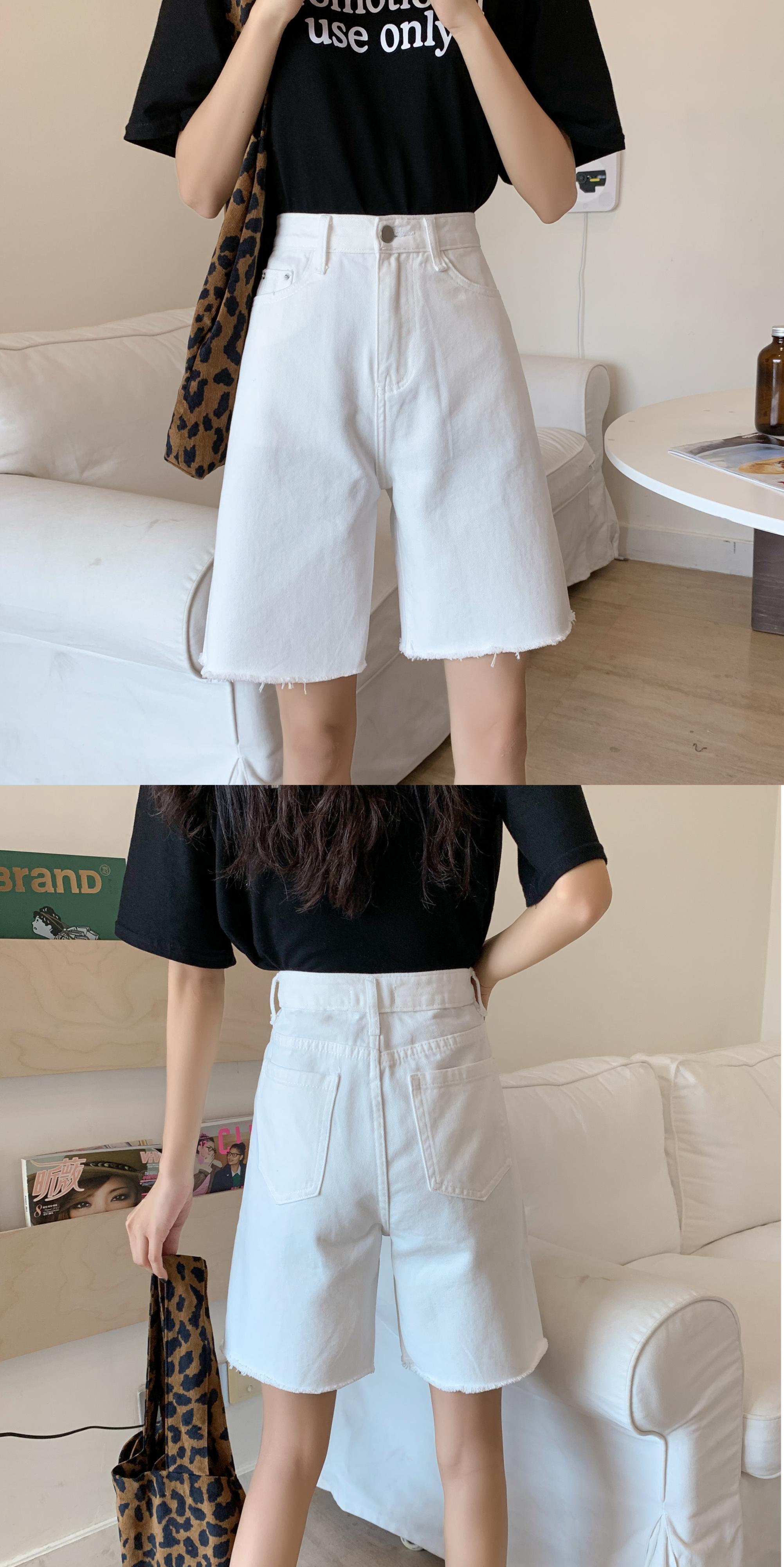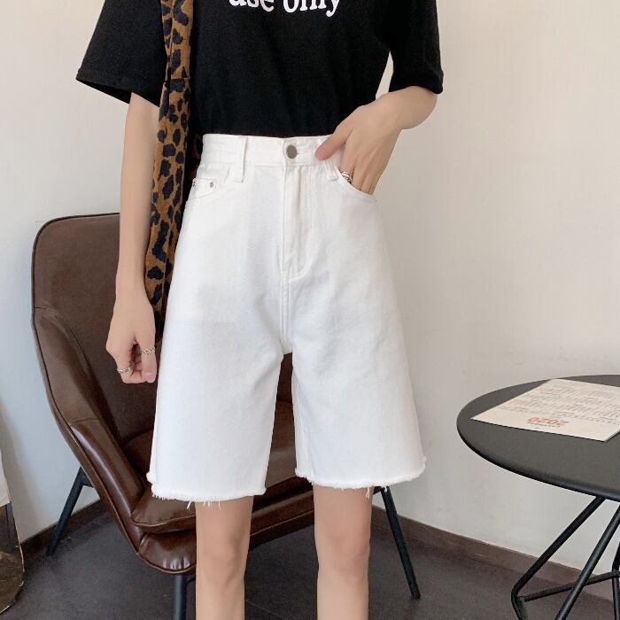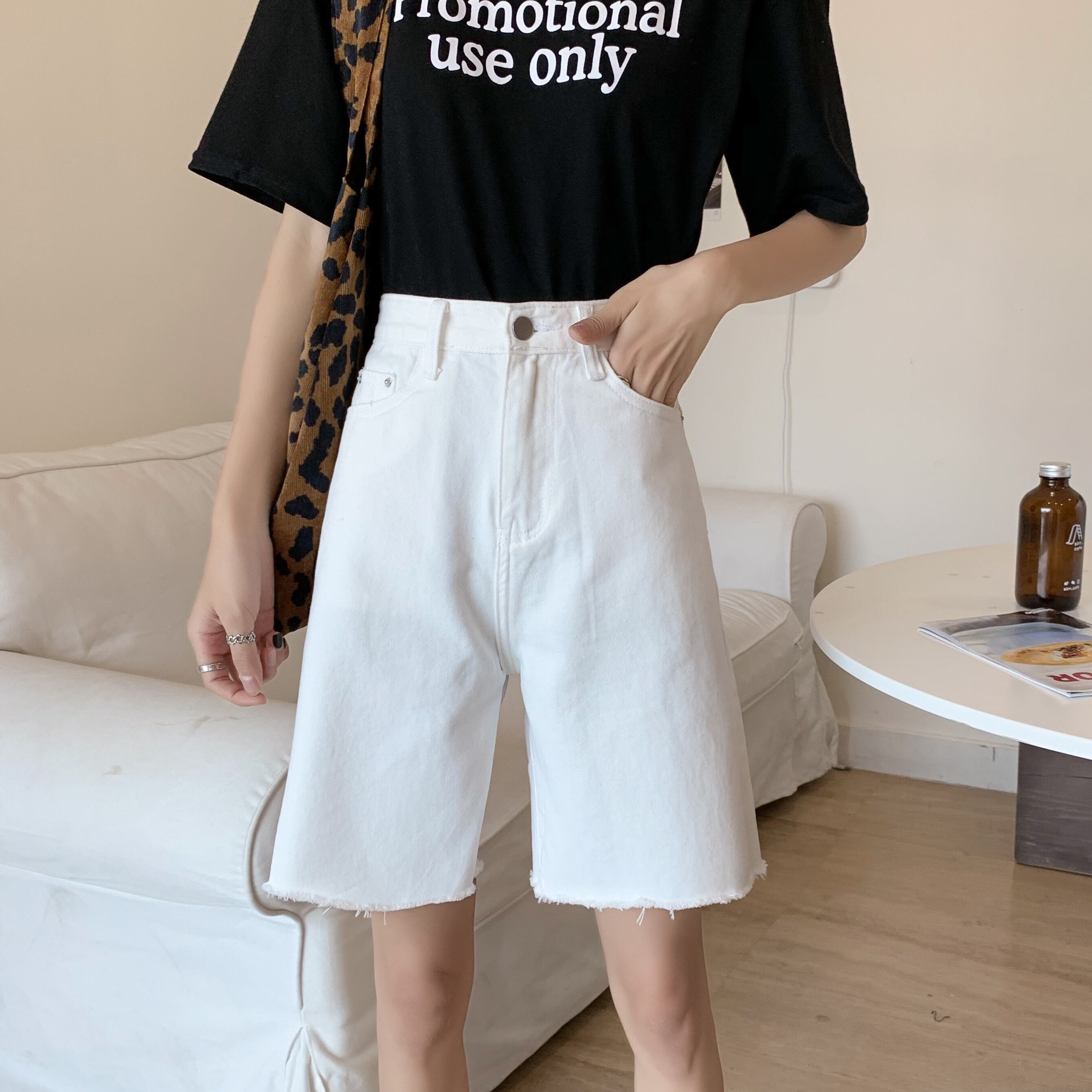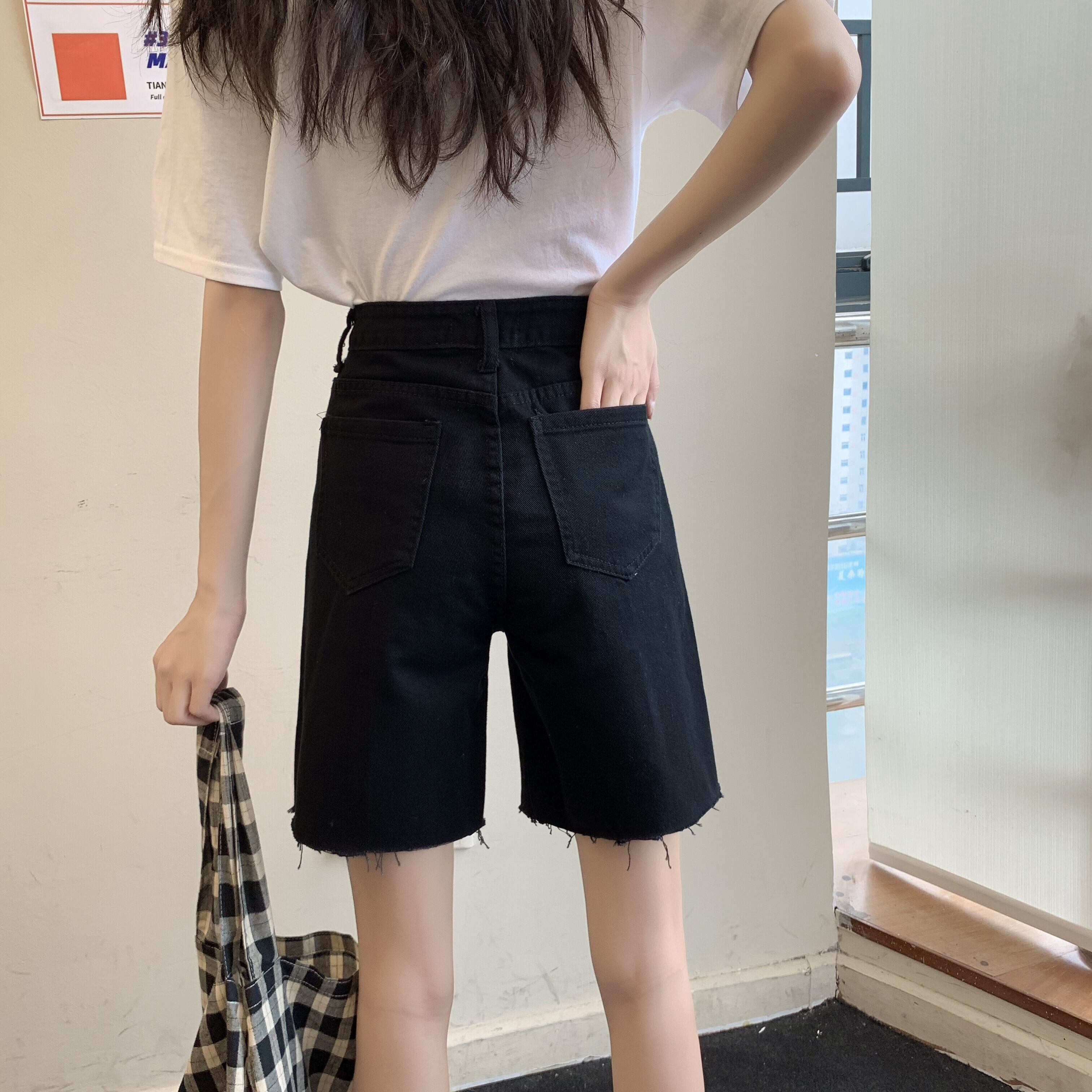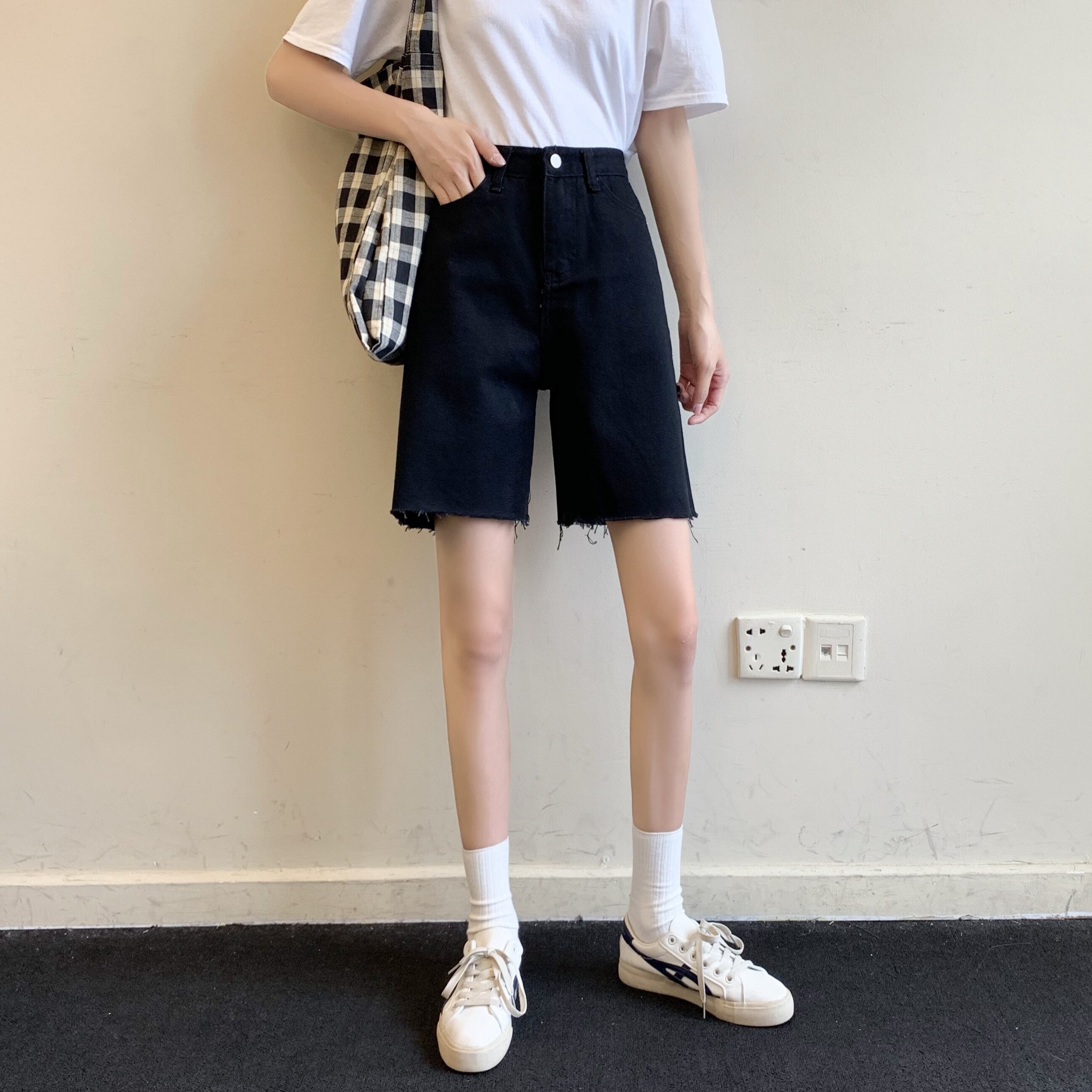 ウエストスリムストレートブラック生デニムショーツ女性2020年夏新入生オールマッチワイドレッグ5点パンツ 1号婦人51270792385