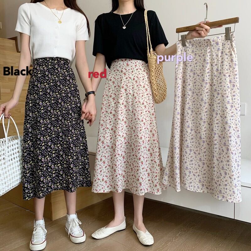 色:ブラックフローラルスカート,パープルフラワースカート,赤い花のスカート