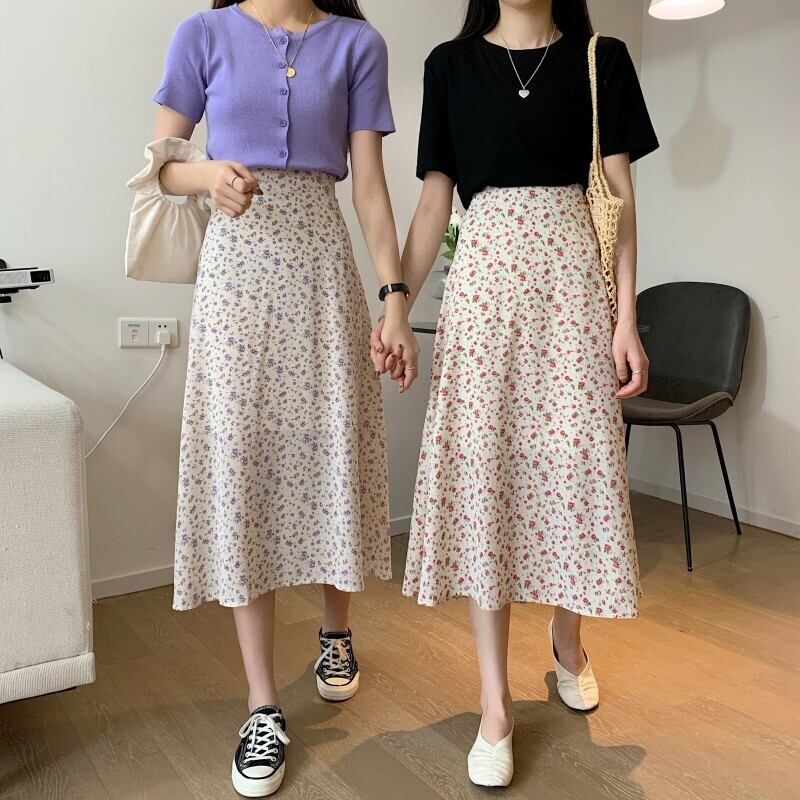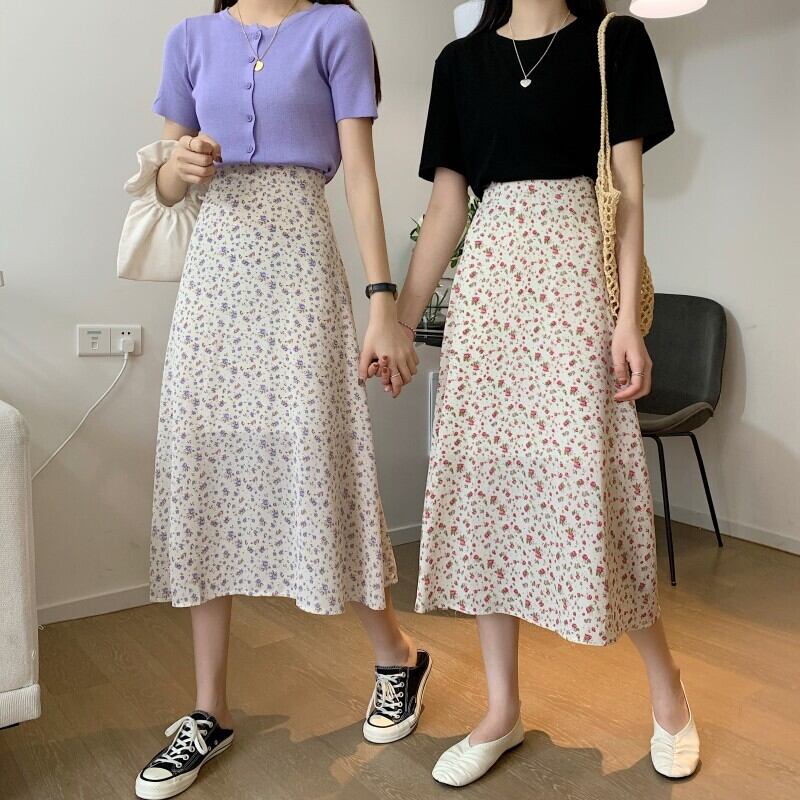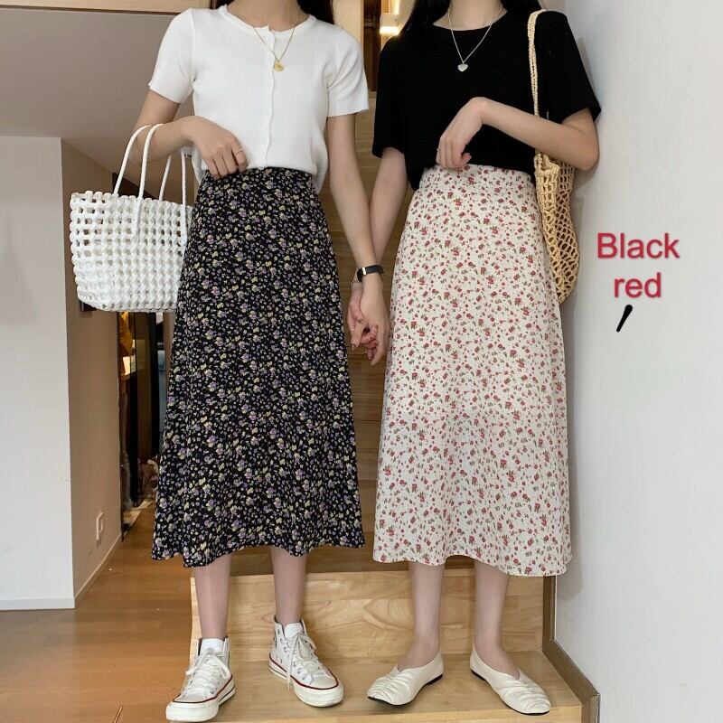 ハーフレングススカート女性2020年夏新バージョンのネットレッドスモールフローラルスカートオールマッチ薄手の学生ミドル丈スカートトレンド 1号婦人9595348153