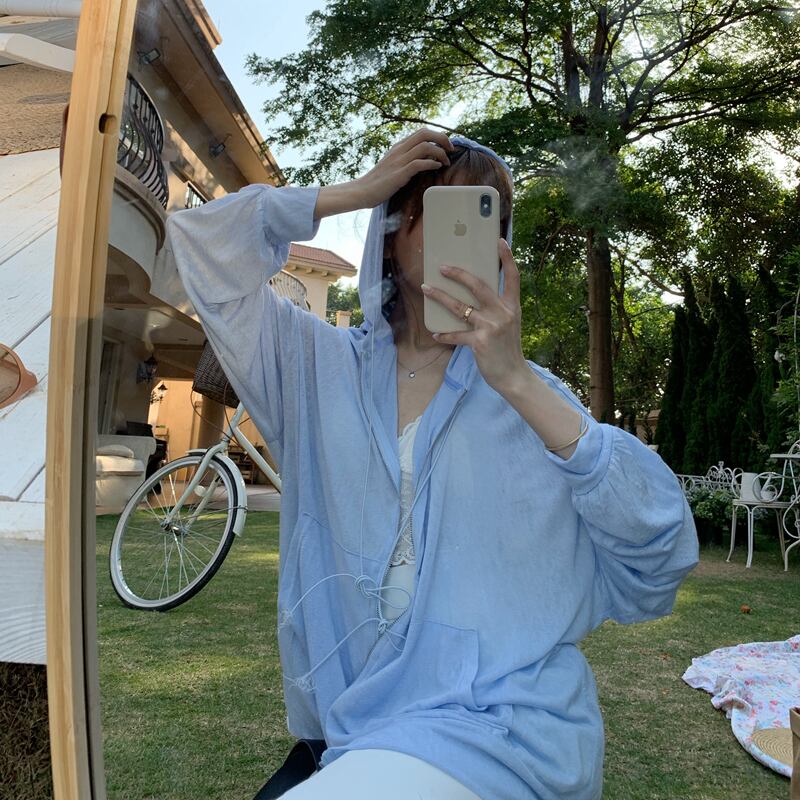 2020年夏新バージョンルーズジッパーホワイトネットレッド薄手長袖エアコンフード付き日焼け止めシャツジャケットメス 1号婦人28395268732
