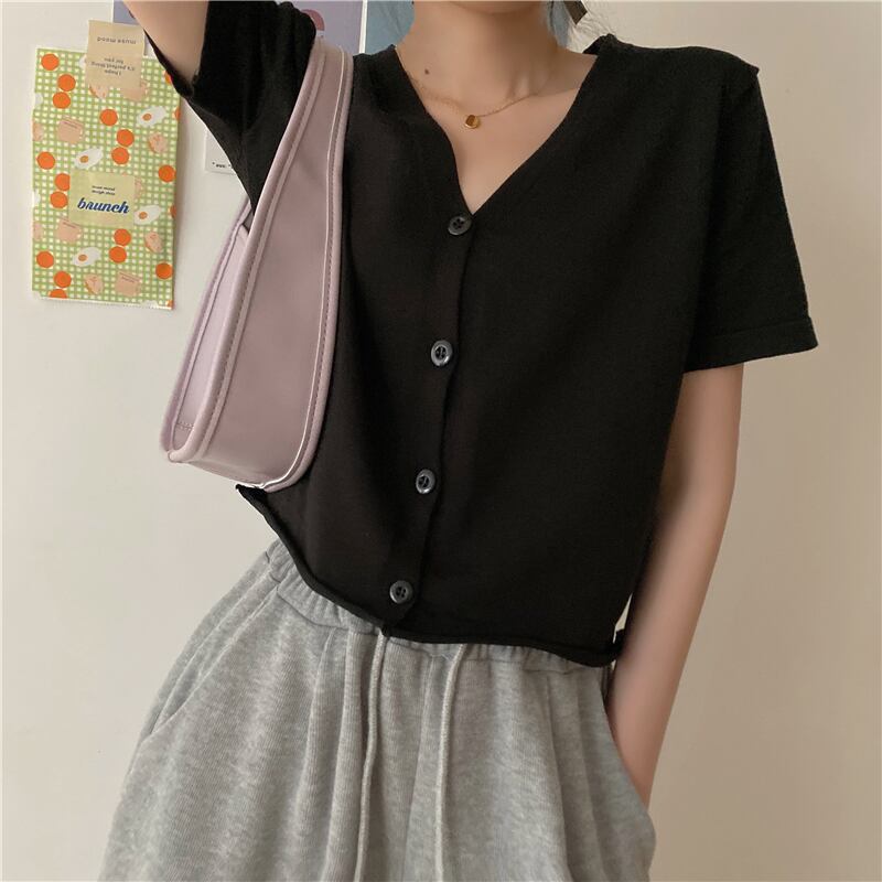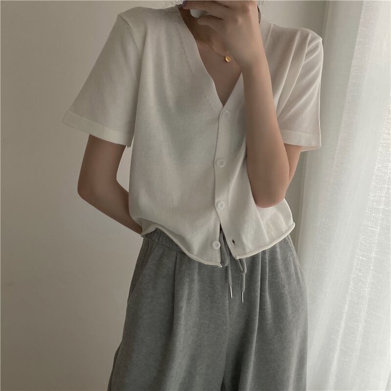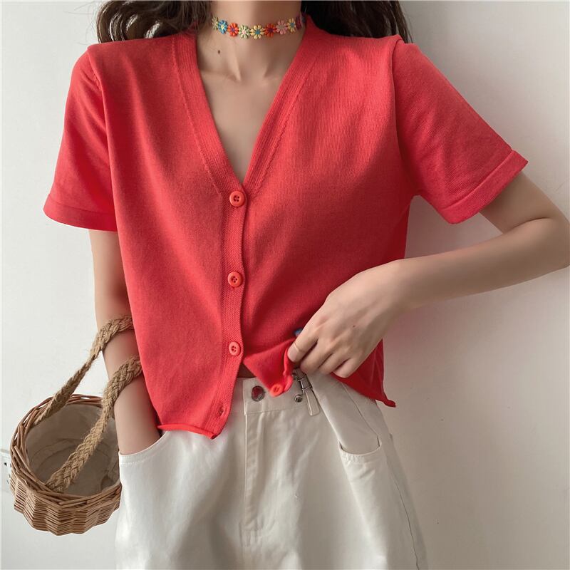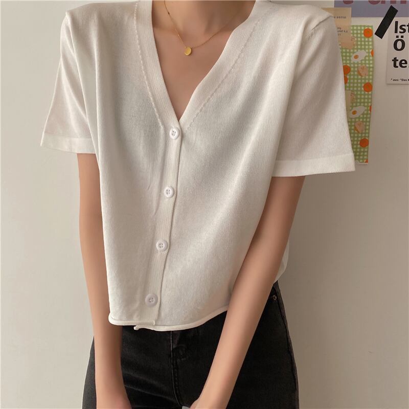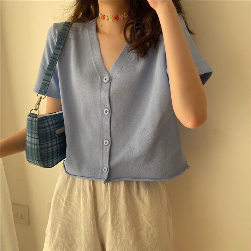 ショートトップの女性の2020年夏の新しいインルーズで薄いワイルドVネックウエスタンニットカーディガンジャケットの学生 1号婦人10824830765