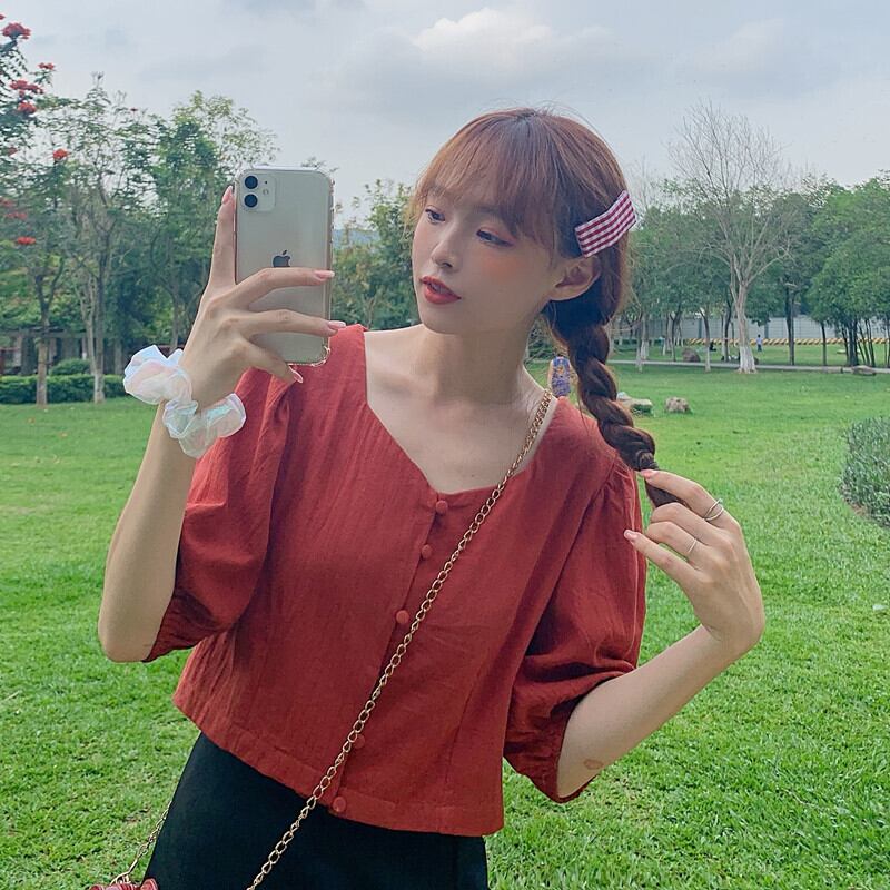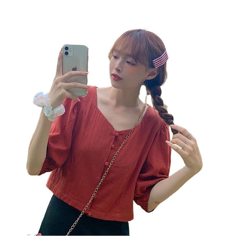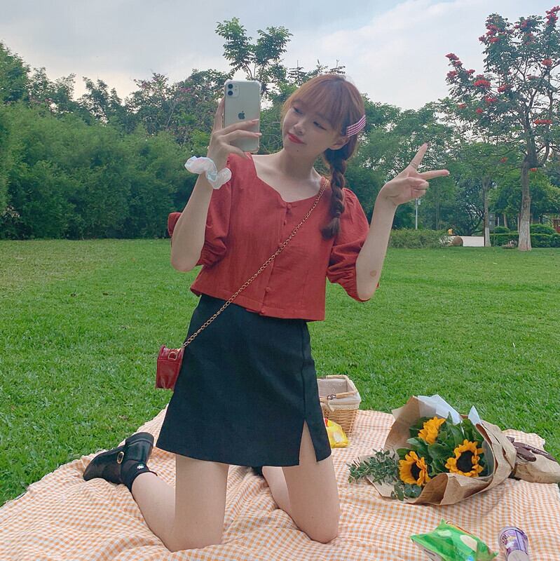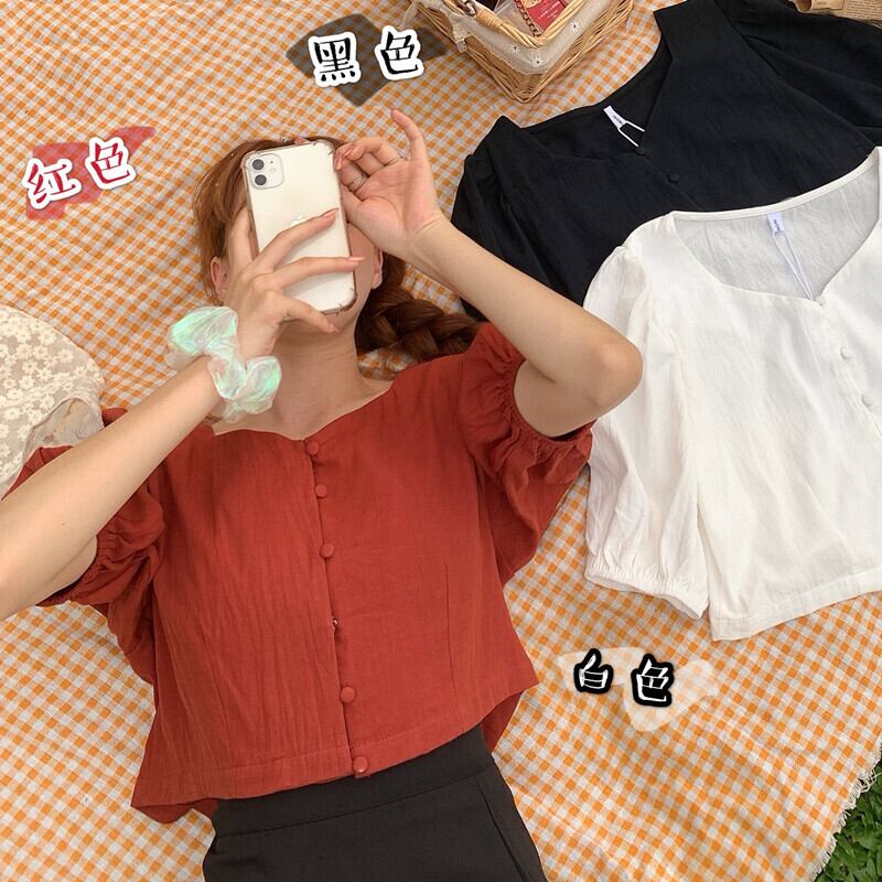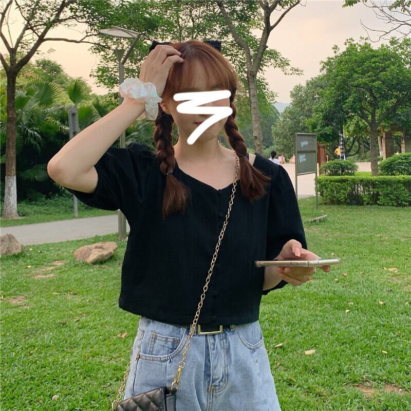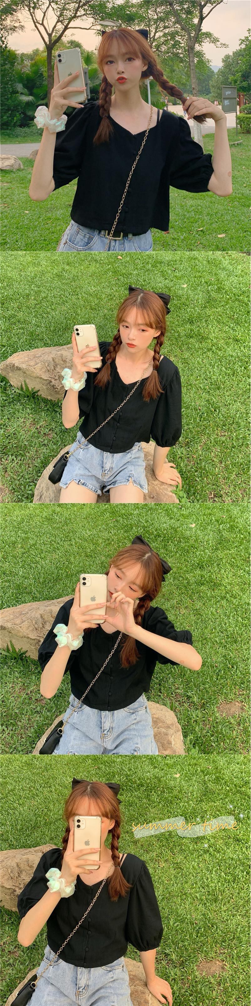 パフスリーブ優しい上着新しい2020夏薄手のレディースシャツウエスタン気質ルーズブラックシャツ 1号婦人89269253942