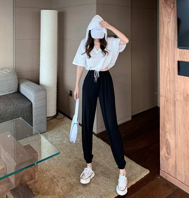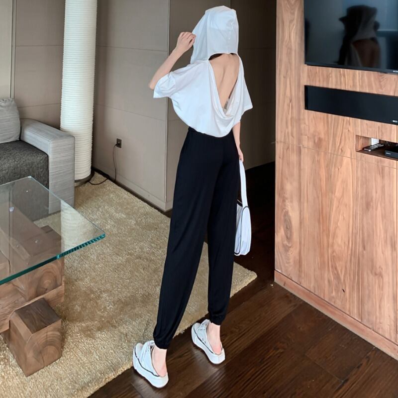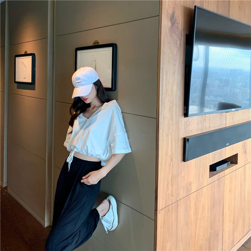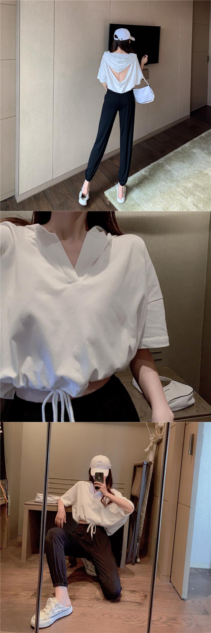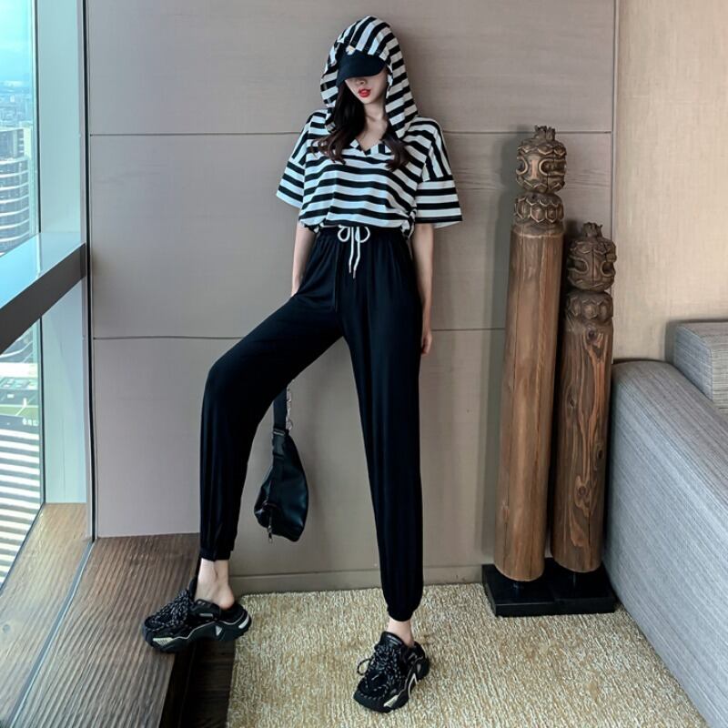 スポーツとレジャーのファッションスーツ新しい女性の夏の日焼け止めフード付きホルター半袖Tシャツトップと足首までの長さのパンツ 1号婦人13788715404