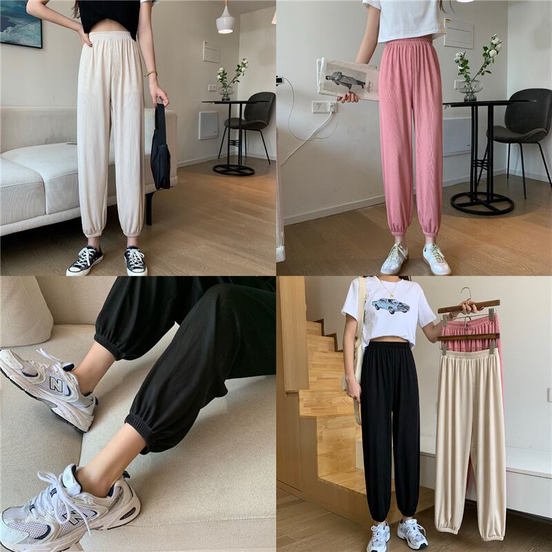 パンツレディース2020夏新アイスシルクドレープハイウエストブルマブラックナインポイントビームパンツトレンド 1号婦人98813695210