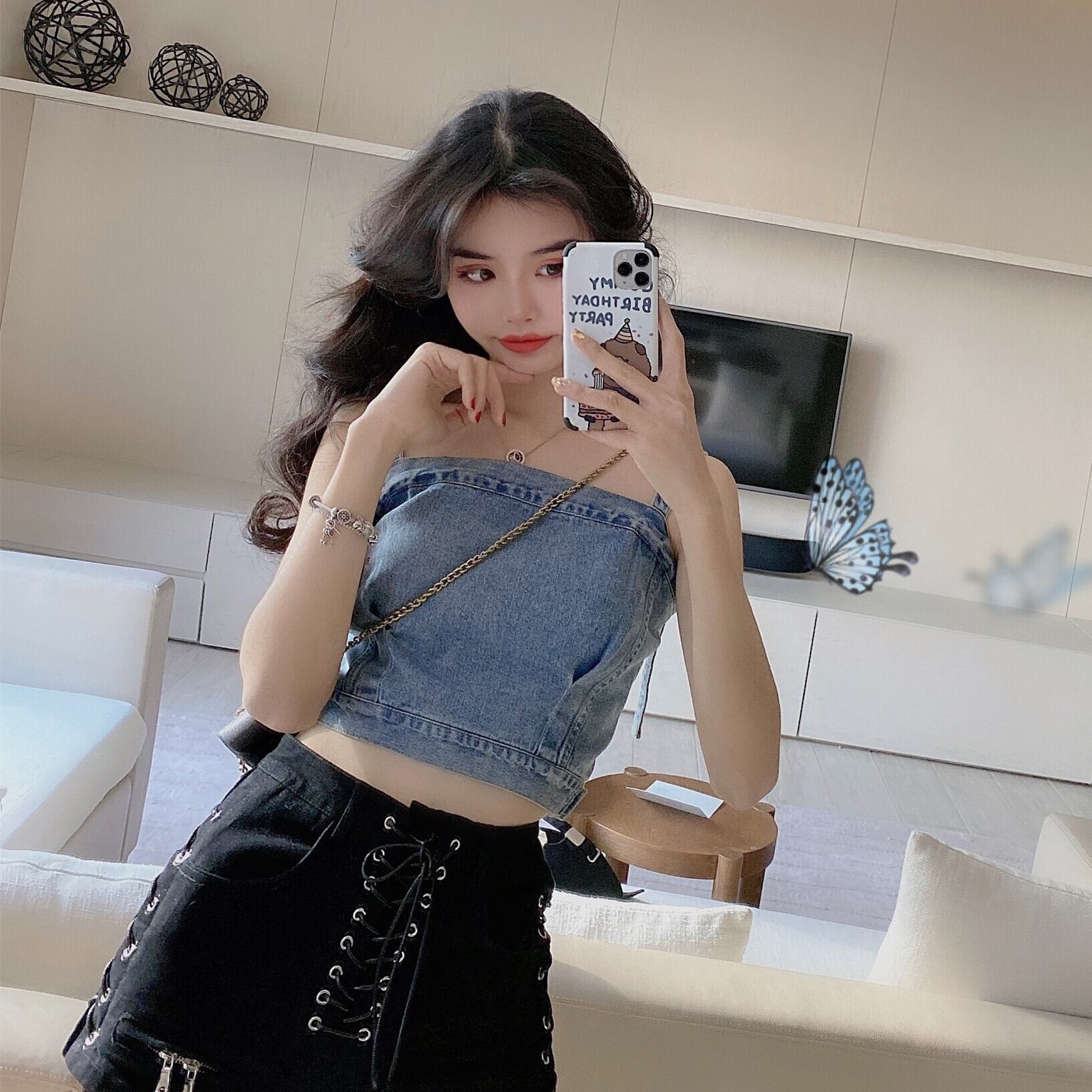 2020年夏の新作レディースセクシーヒョナスタイルショートアウター美しいバックデニムベストノースリーブ多目的トップトレンド 1号婦人50788840663