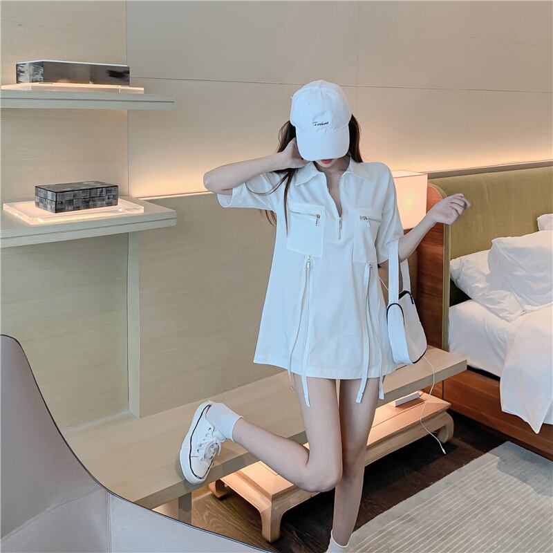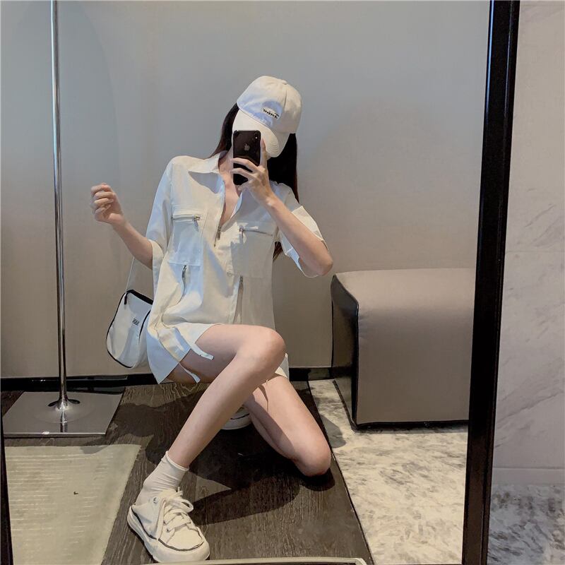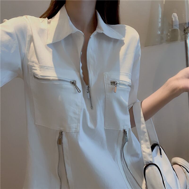 2020年夏の新しい女性の香港スタイルの気質カジュアルジッパー半袖デザインニッチシャツホワイトトップ 1号婦人89330446819