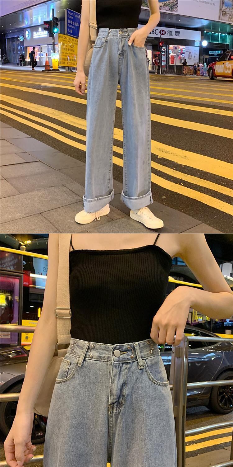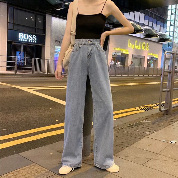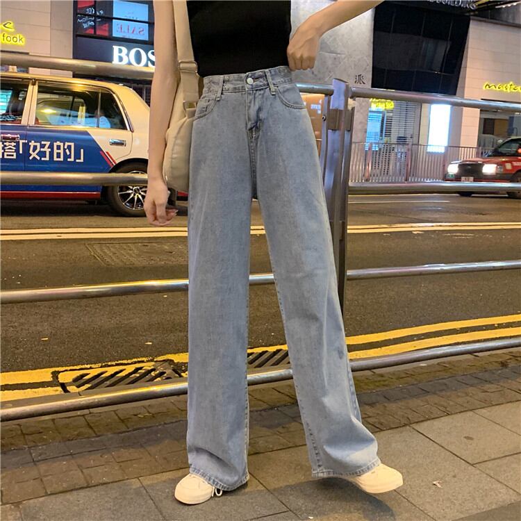 パンツ女性2020ニュージーンズストレートルーズハイウエストスタイルモップパンツ調節可能な薄いワイドレッグパンツ 1号婦人84735788279