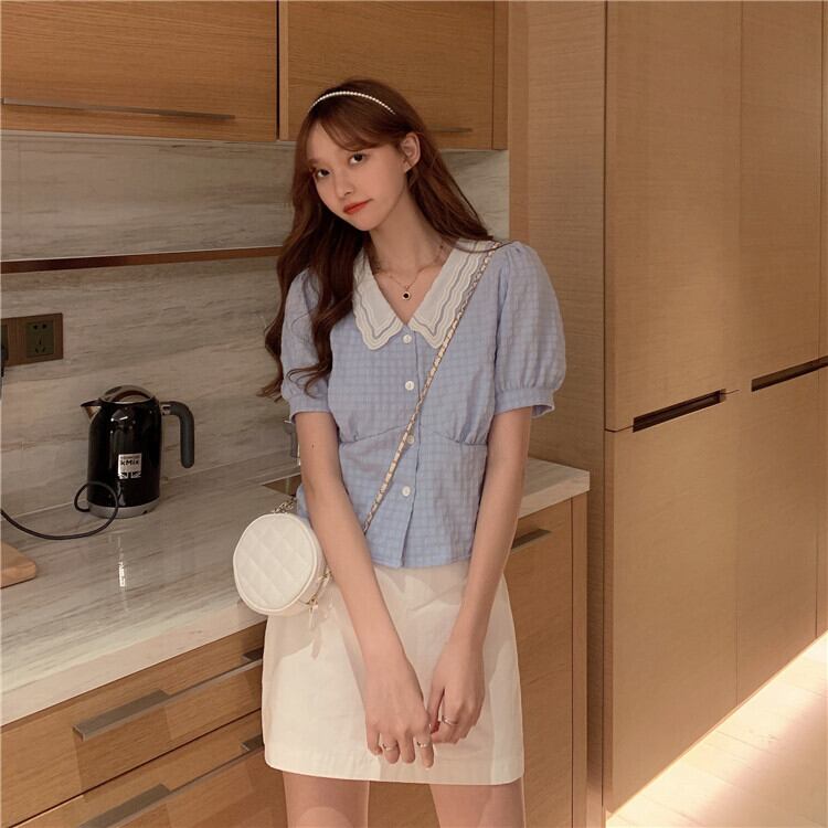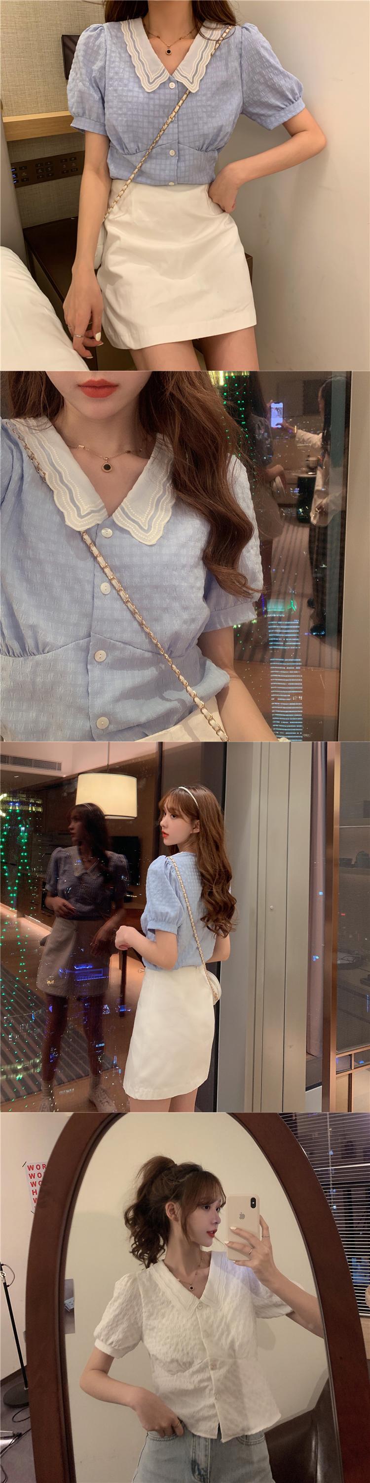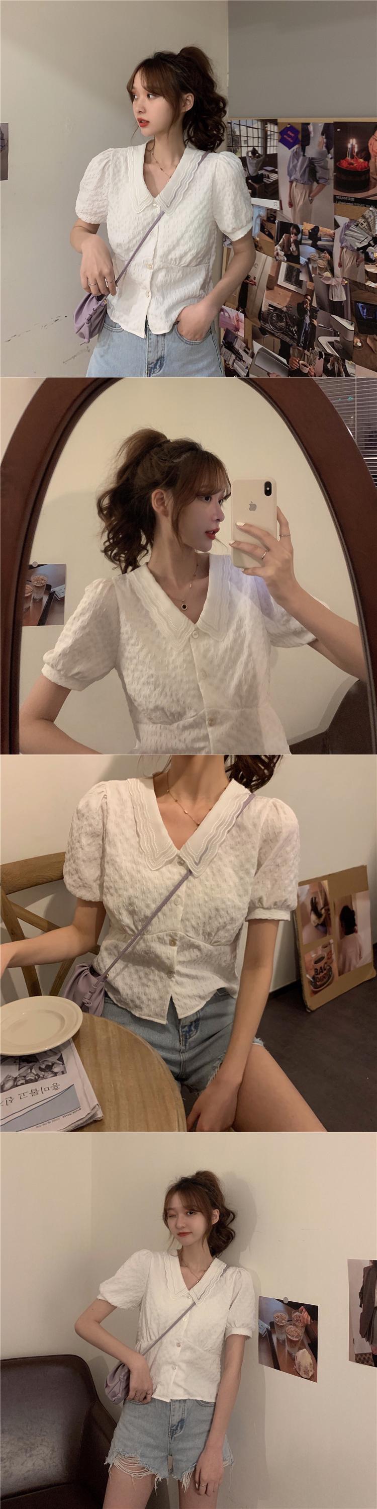 2020年夏の新作ドールカラーシャツ女性デザインニッチ気質優しいパフスリーブトップ 1号婦人6790030846