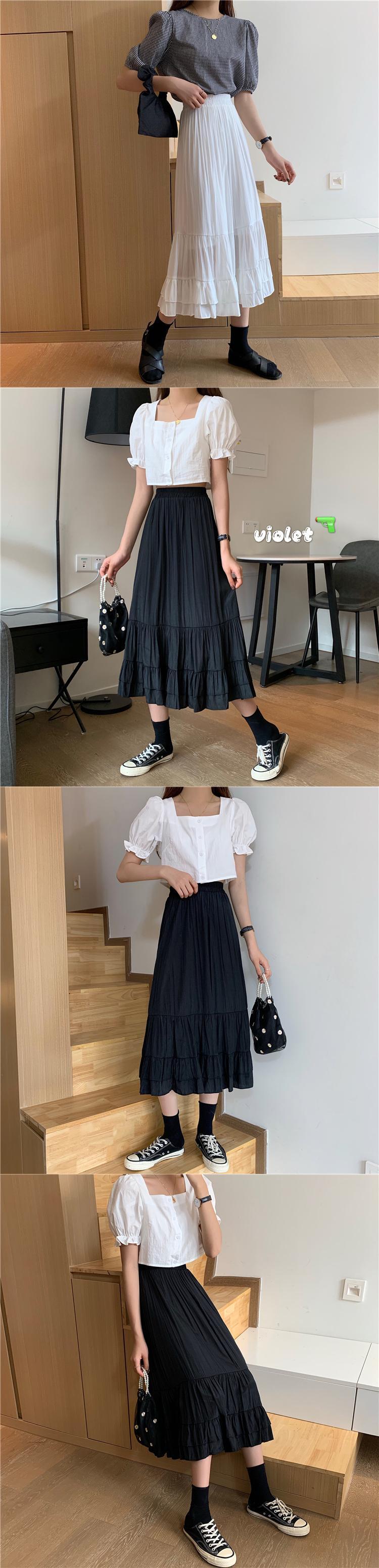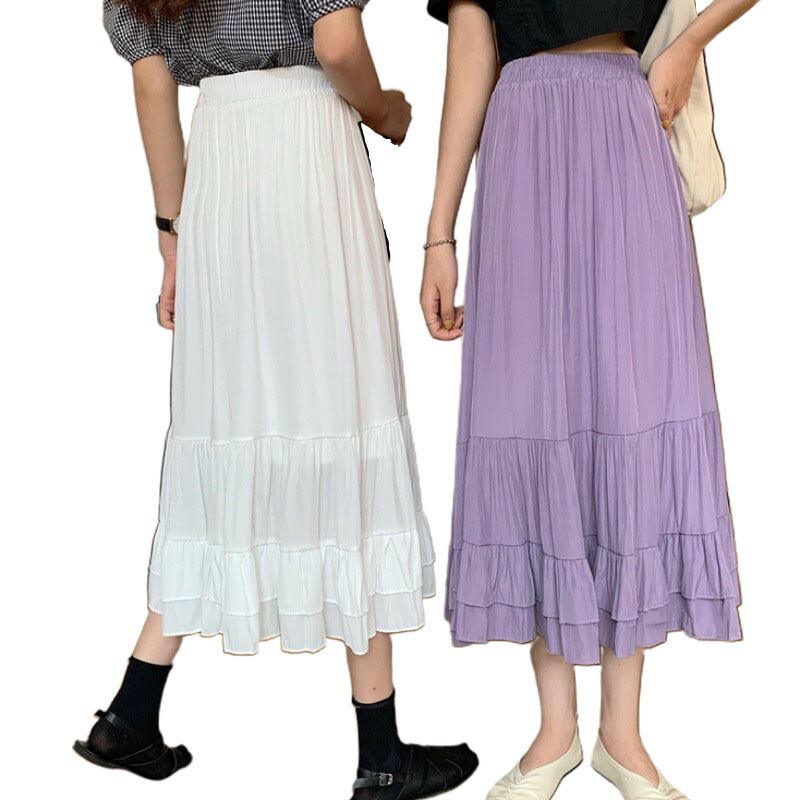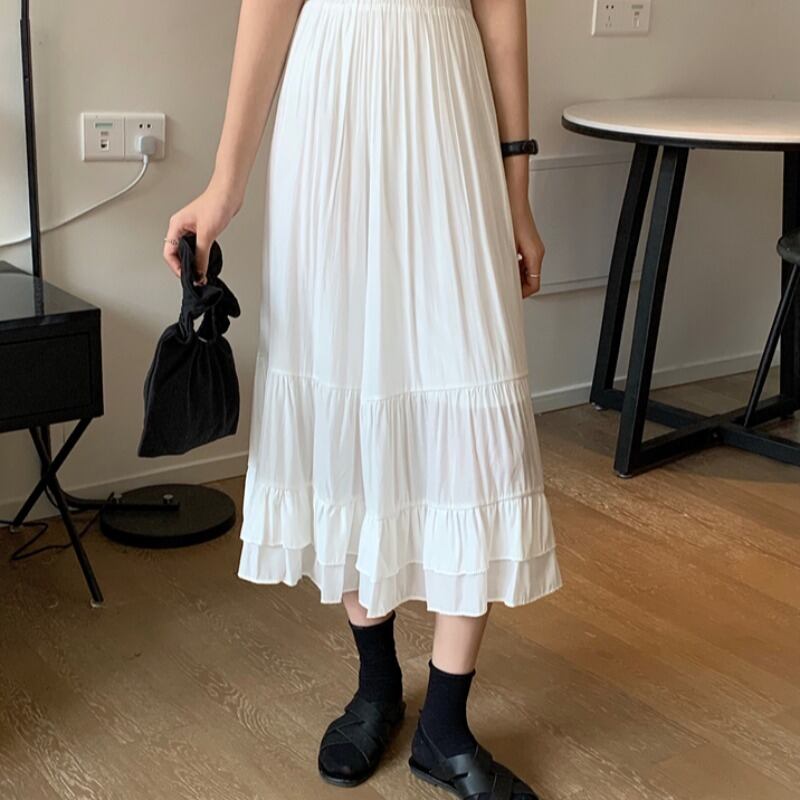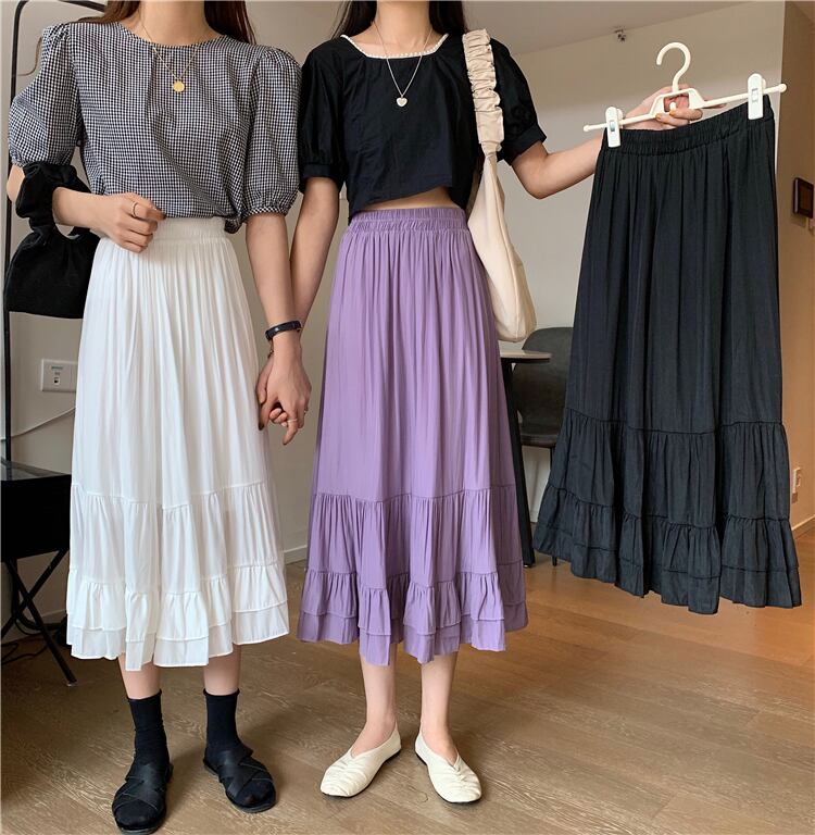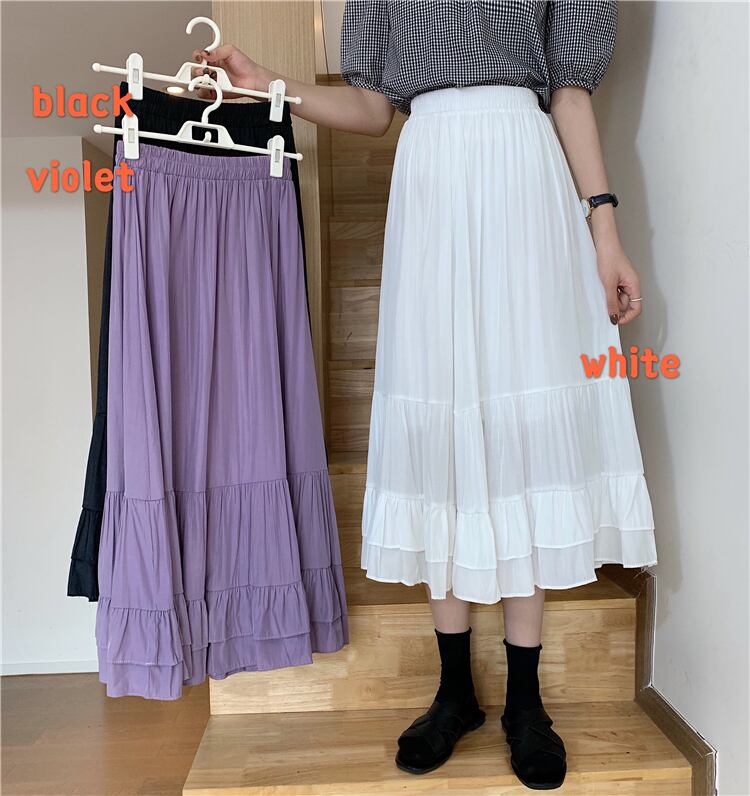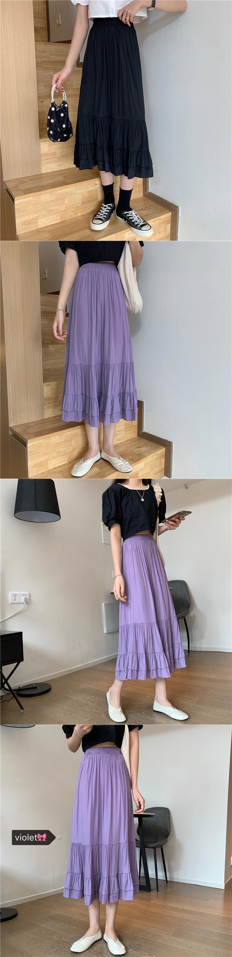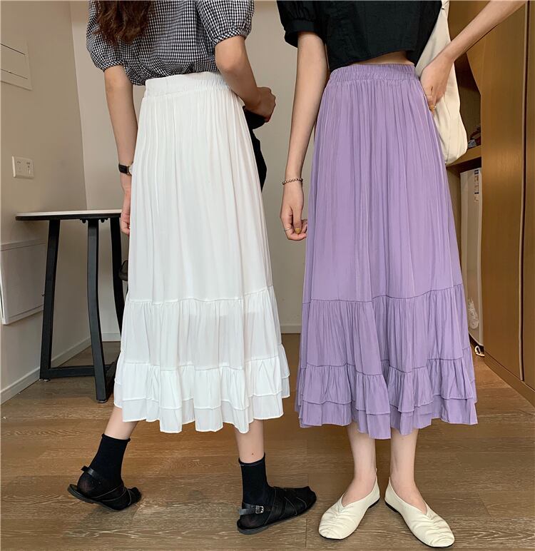 2020年新作サマーウィメンズフリルハイウエストオールマッチAラインスカート無地スリムスカートミドル丈 1号婦人40756283684