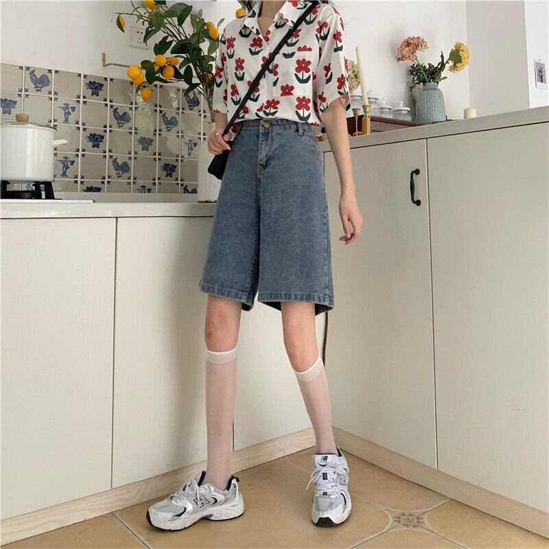 2020年夏の5点パンツレディース新香港スタイルルーズデニムショーツ学生スリムカジュアルハイウエストワイドレッグパンツ 1号婦人88563005613