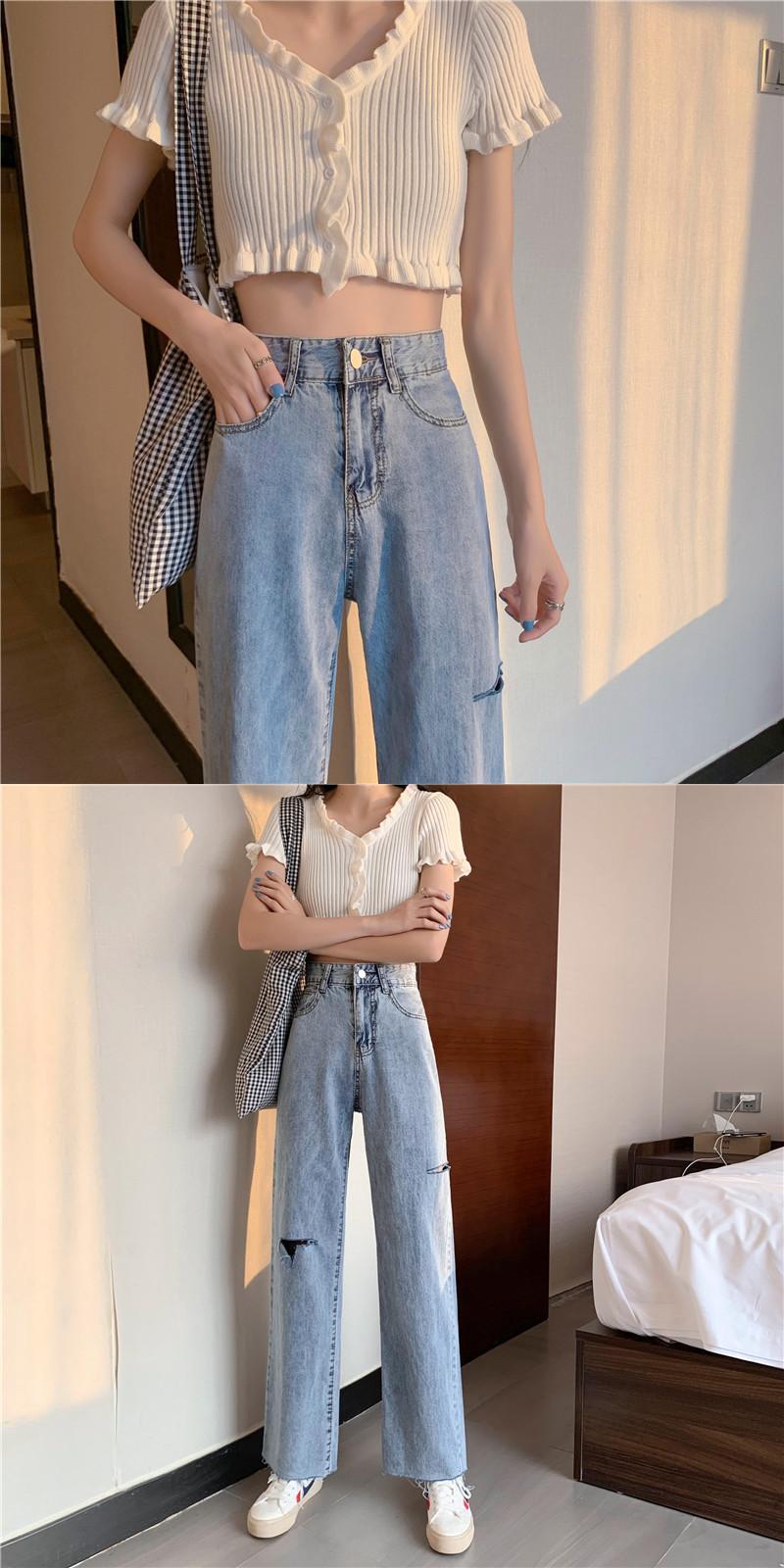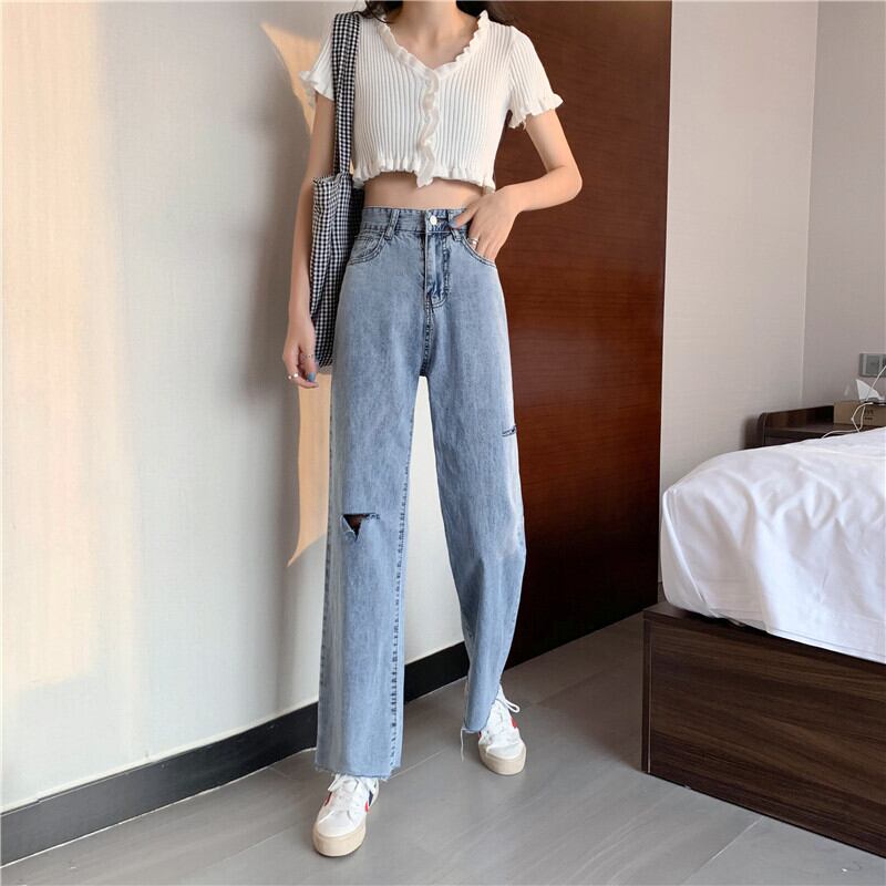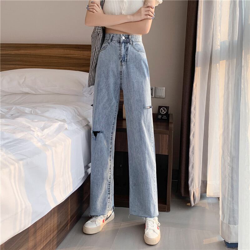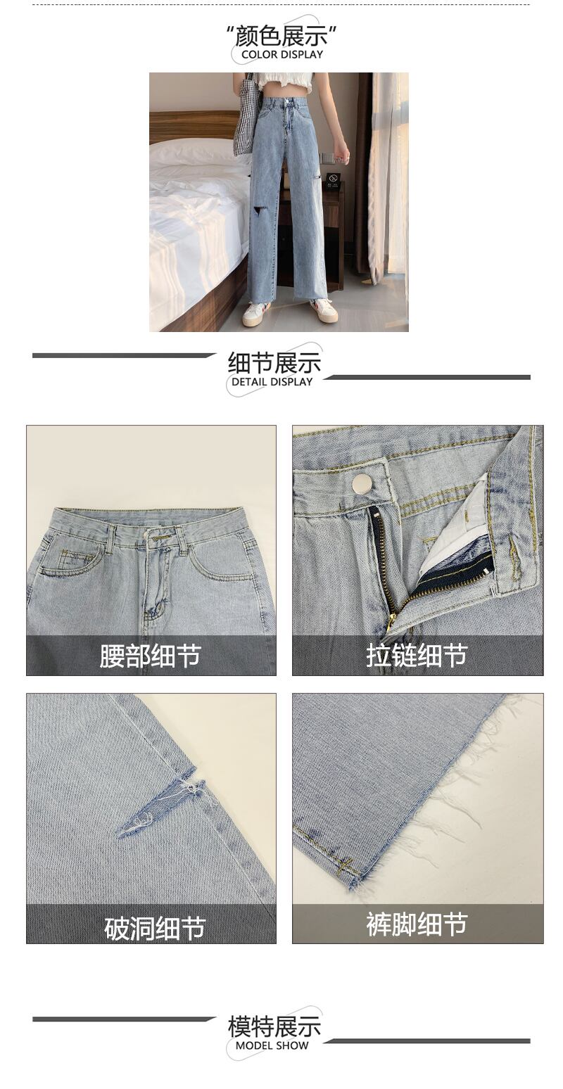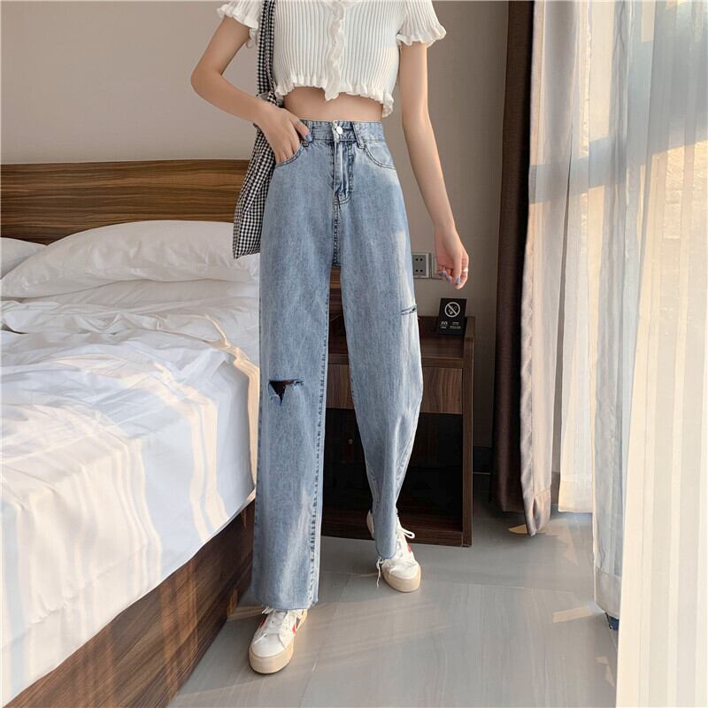 2020年夏の新作レディースジーンズストレートルーズルーズホールローエッジライトカラーカジュアルパンツワイドレッグパンツ 1号婦人79380808702