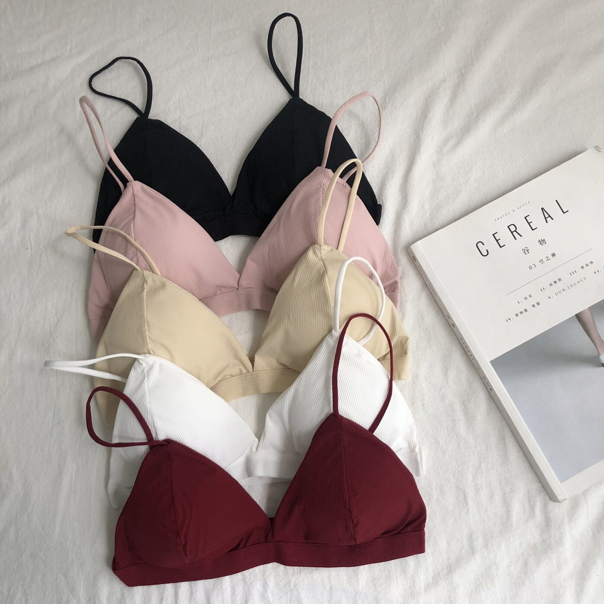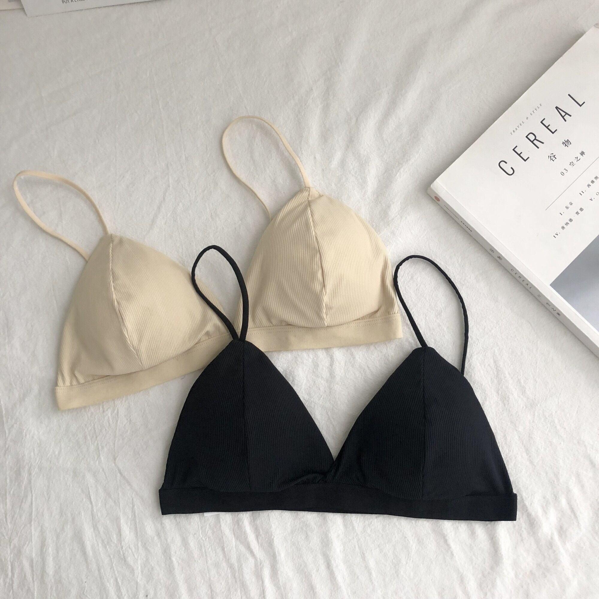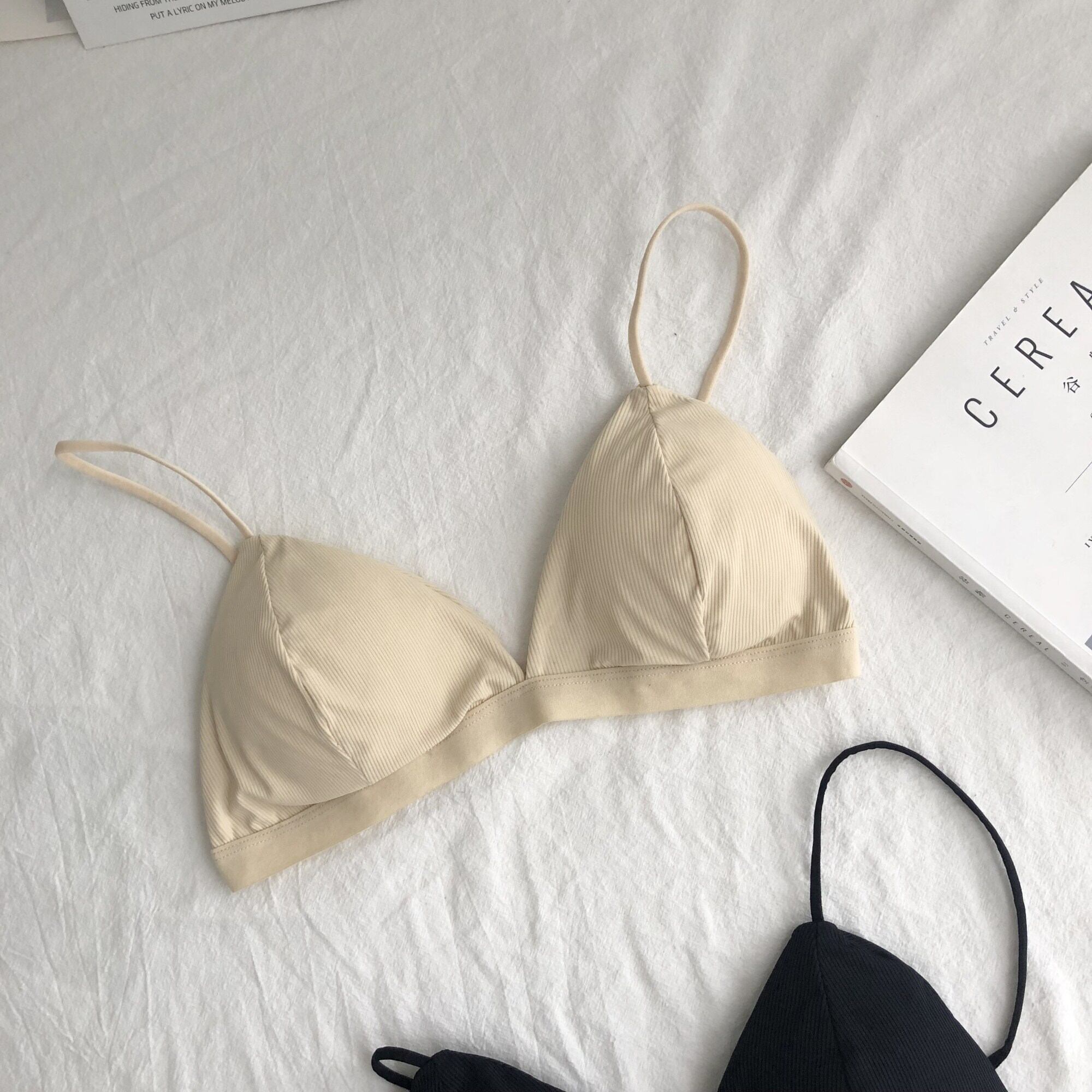 フレンチスタイルノースチールリング下着女性薄いスリングセクシーな三角カップブラ夏の新しいスタイル胸パッド黒包まれた胸 1号婦人68479234830