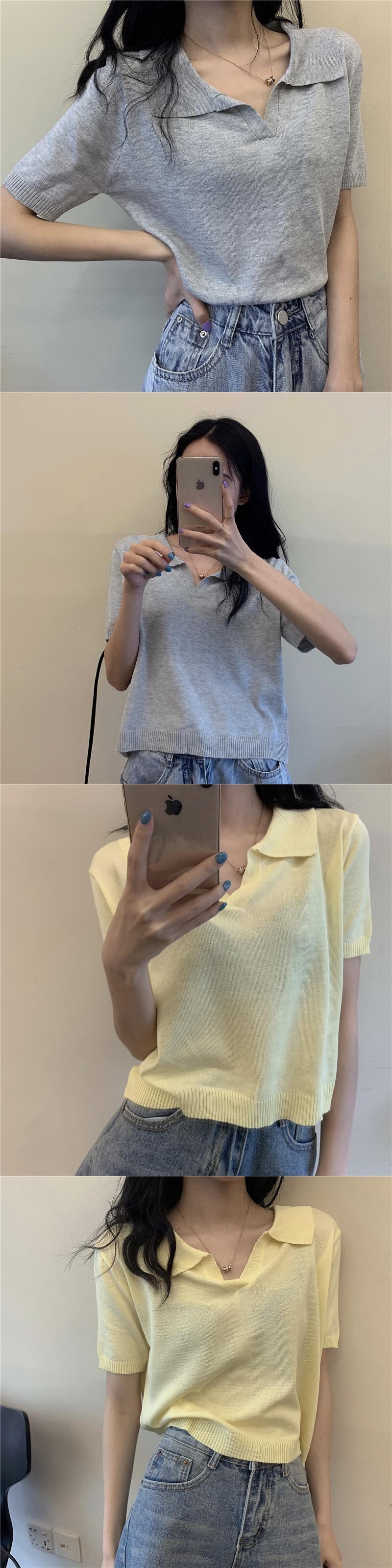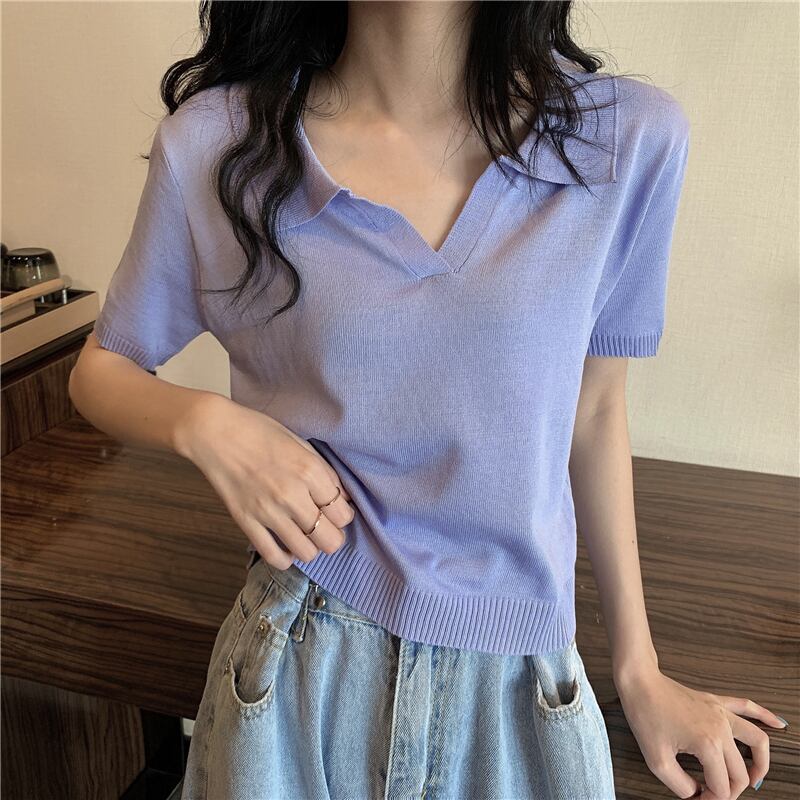 トップウィメンズ2020ニューサマーショートニットポロシャツワイルドシンソリッドカラー半袖Tシャツトレンド 1号婦人99743819279