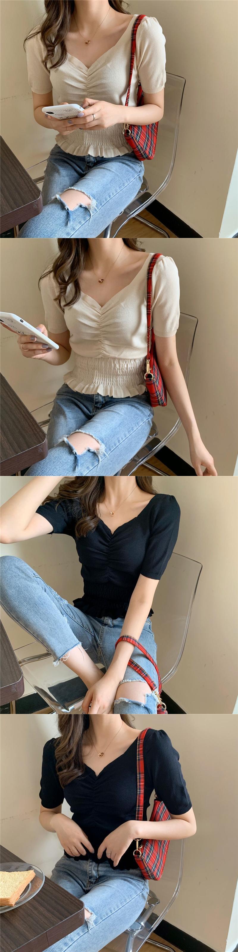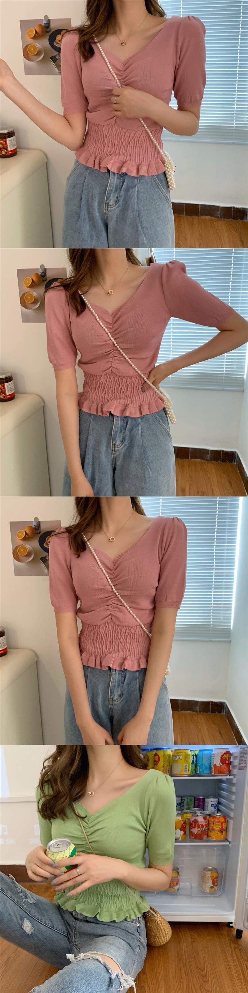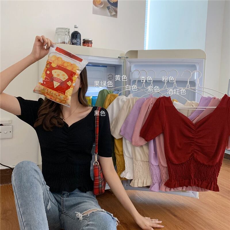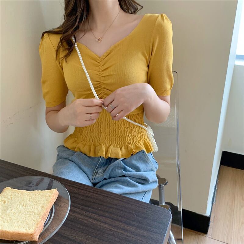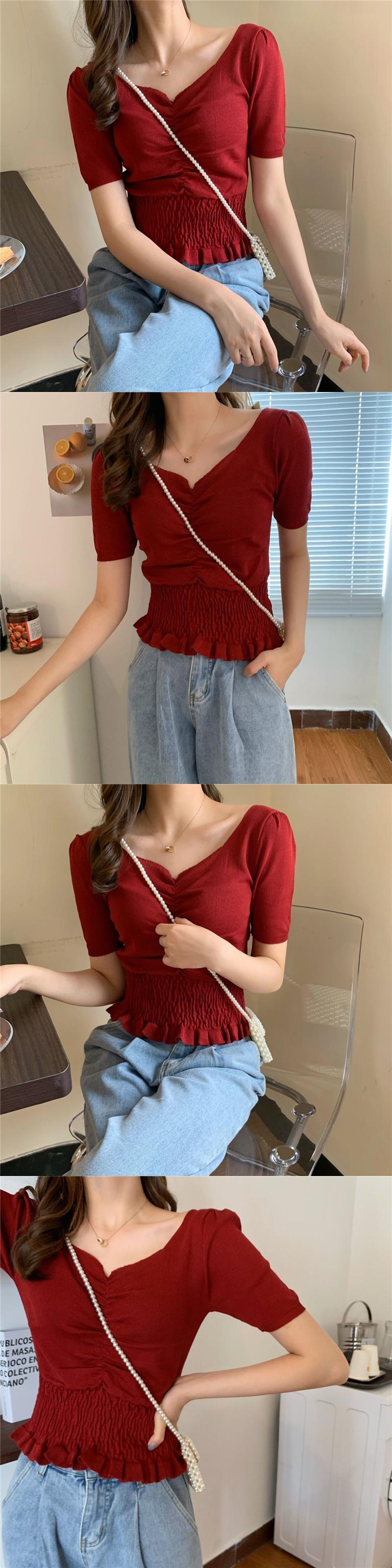 2020年夏の新しい女性フレンチVネック半袖薄ニットTシャツネットレッドトップ優しい風白ボトミングシャツ 1号婦人11298998511