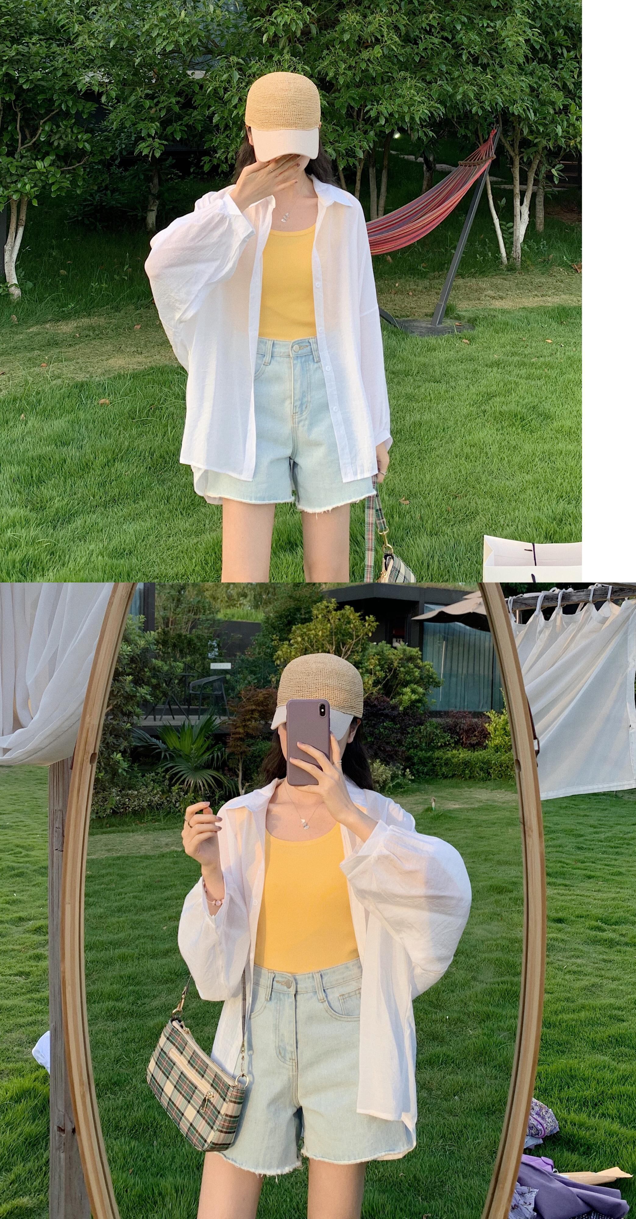 スーツ女性の2020年夏の新しい日焼け止め長袖シャツシャツスリムスリミングブラックベストボトミングシャツ 1号婦人82716165862