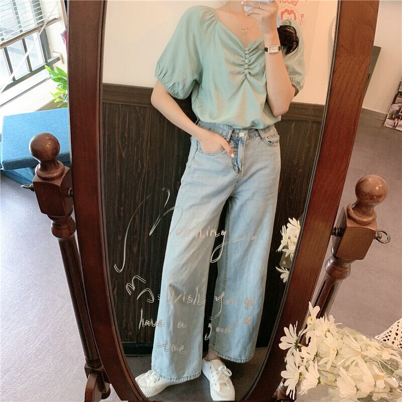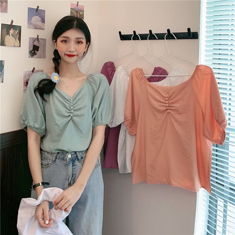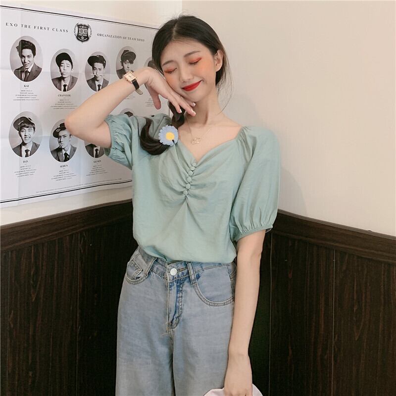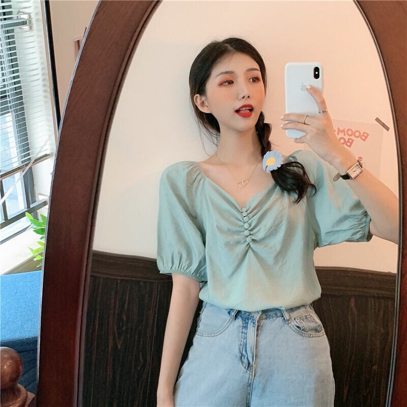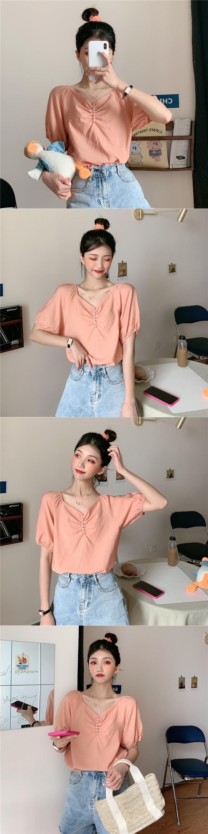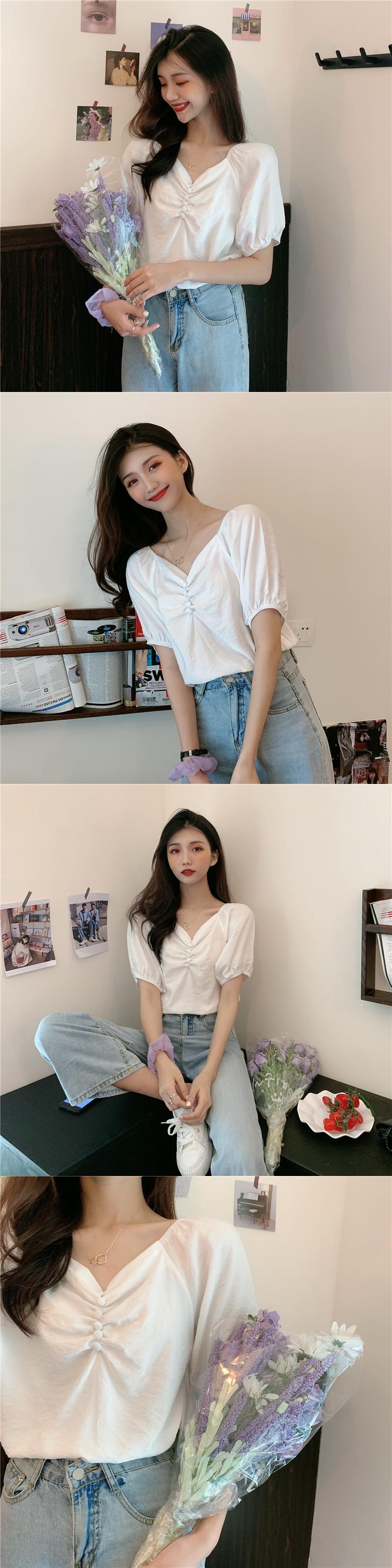 シャツデザインセンスニッチバブル半袖シャツ新夏薄手スタイル洋風Vネック白シャツ 1号婦人33563596547
