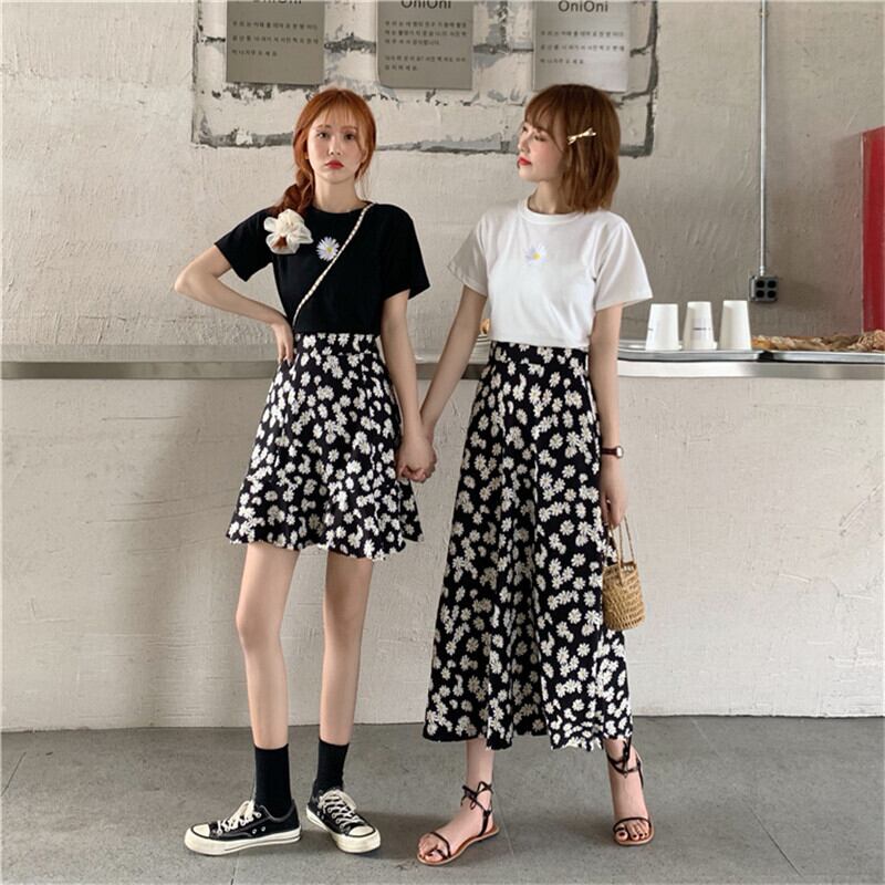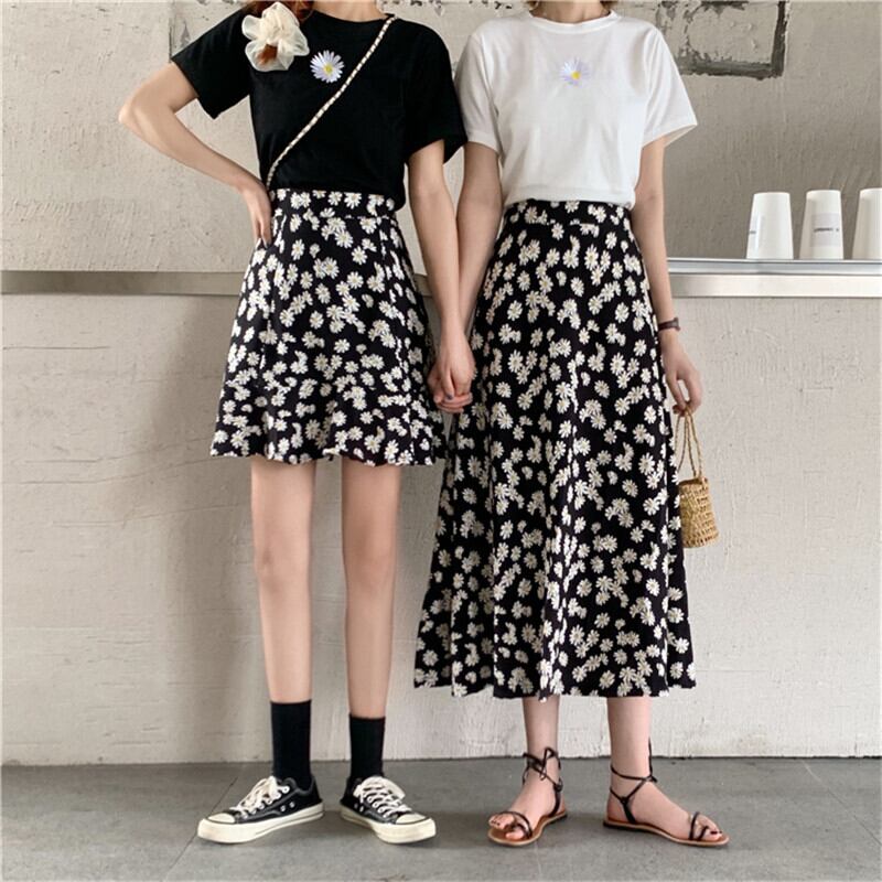 ウエスタンスタイルの年齢を減らすスカートスーツ女性2020サマードレス香港フレーバー小さなデイジー刺繡半袖Tシャツ+スカートツーピースセット 1号婦人87303232011
