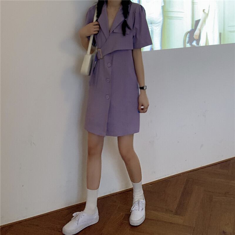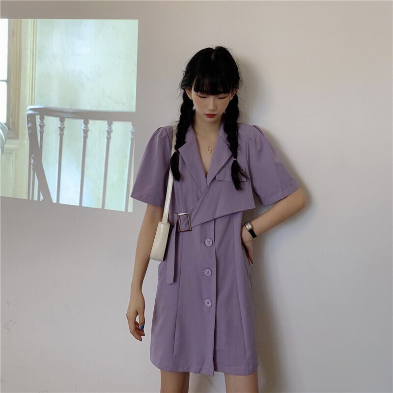 フランスのニッチなスーツ、ウエスト、薄い気質の紫色の優しい風のドレスの女性のサマードレス2020新バージョン 1号婦人4879671275