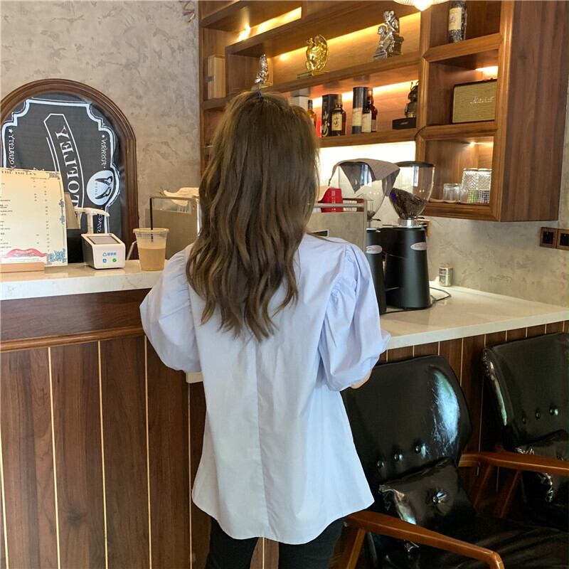2020年夏新バージョンのフレンチパフスリーブルーズホワイト半袖シャツ女性デザインセンスニッチトップス 1号婦人24672581137
