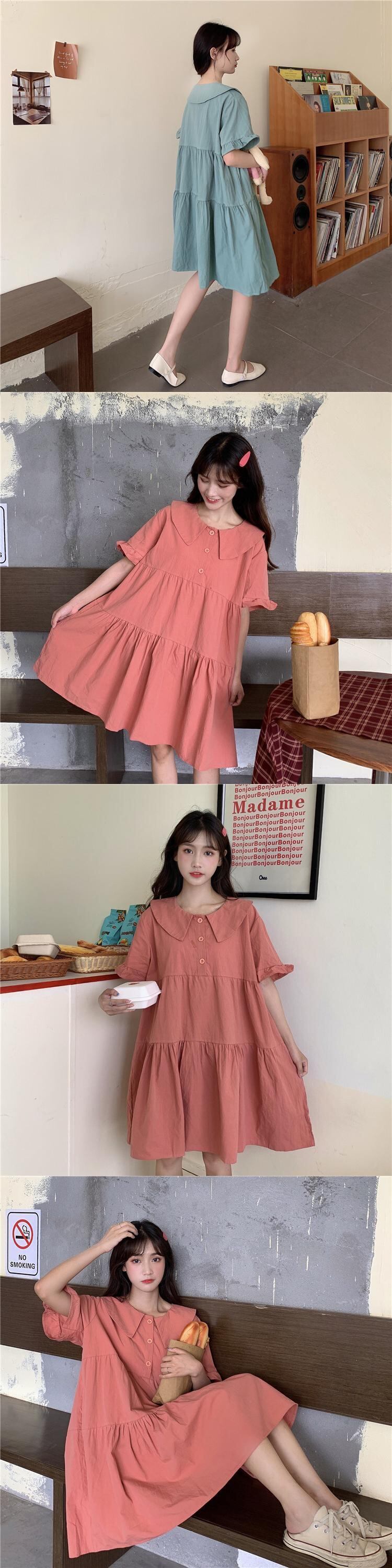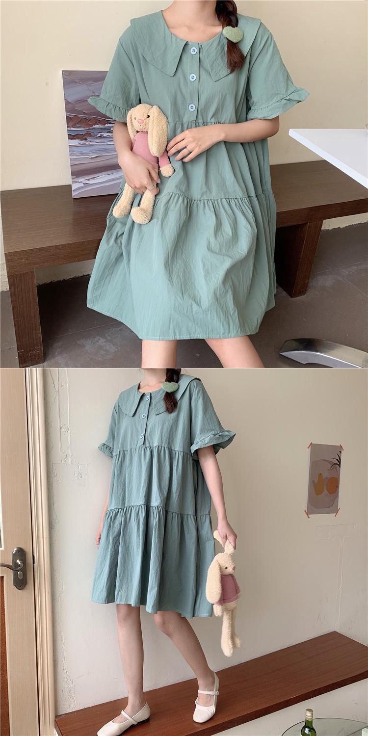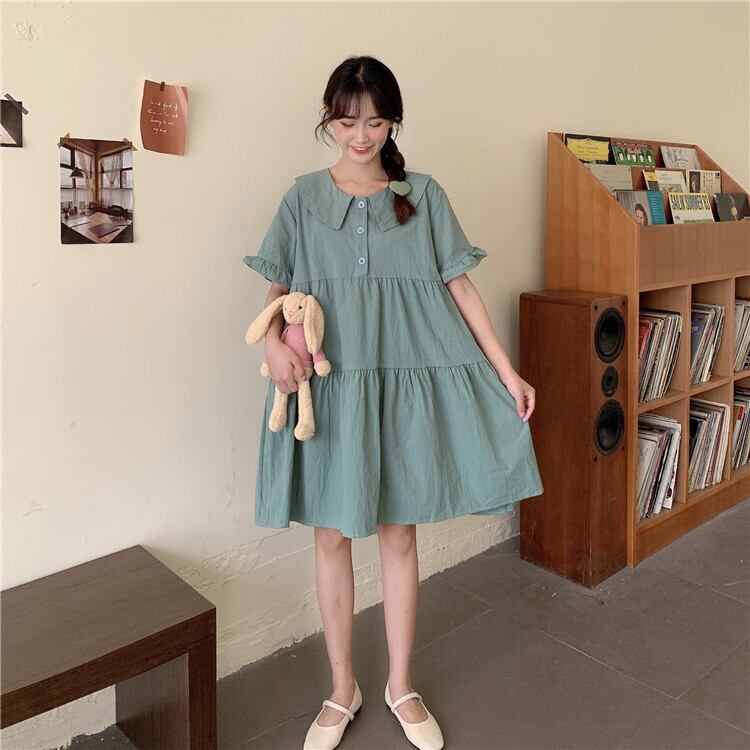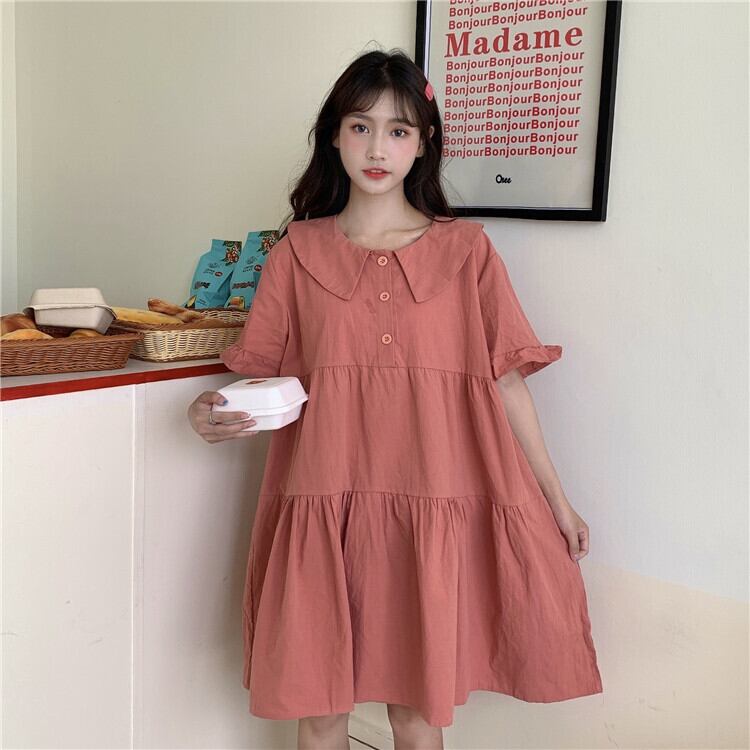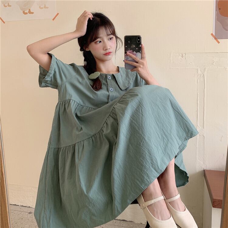 2020年夏新作女性バージョンキュートでスウィートルーズルースシン気質ドールカラー半袖ワンピースロングスカート 1号婦人89861506588