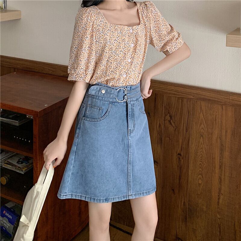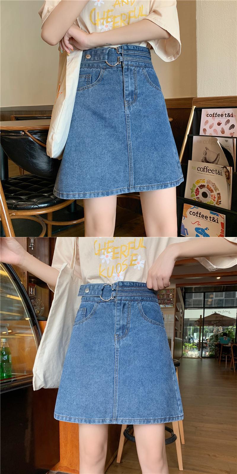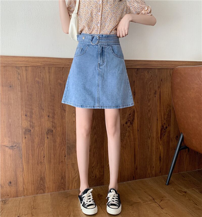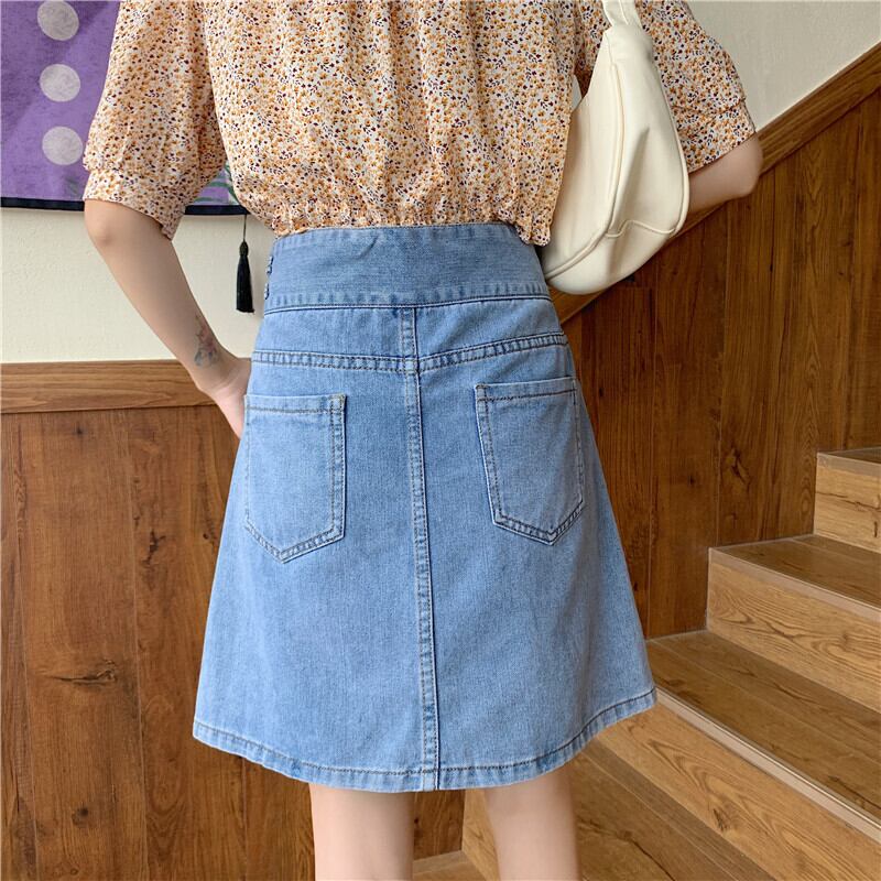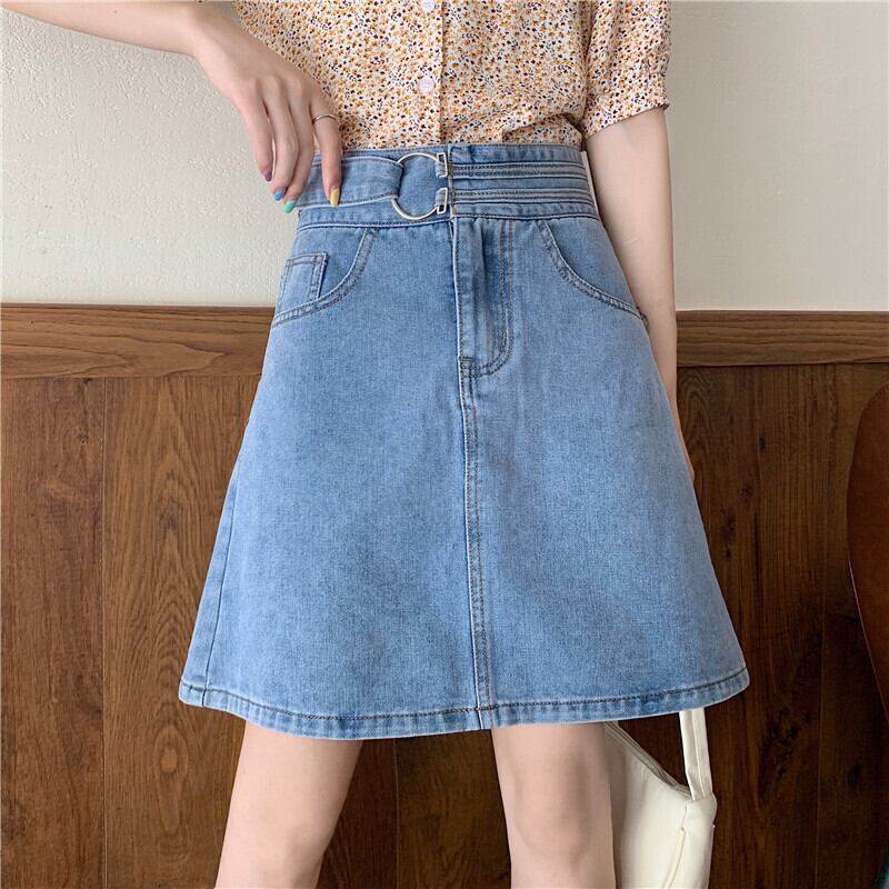 スカートの女性2020年夏の新しい香港スタイルのレトロなハイウエストデニムスカートオールマッチの薄い明るい色のAラインスカート 1号婦人59683616410