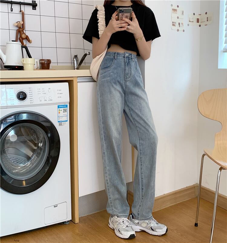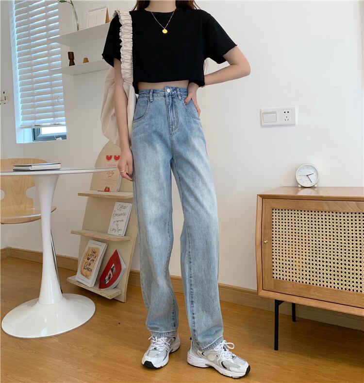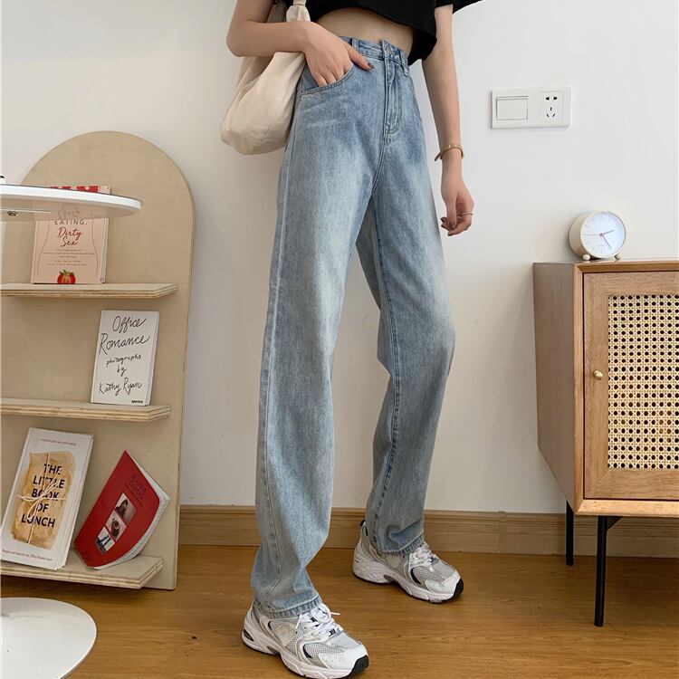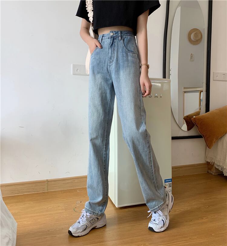 ジーンズレディース2020新夏薄片ストレートルーズレトロハイウエストワイドレッグモップロングパンツ 1号婦人26142224147