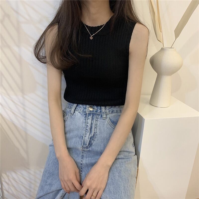 2020年夏のノースリーブトップスレディース無地ニットベストアウター着用スリム薄手のTシャツベーストレンド 1号婦人67143377779