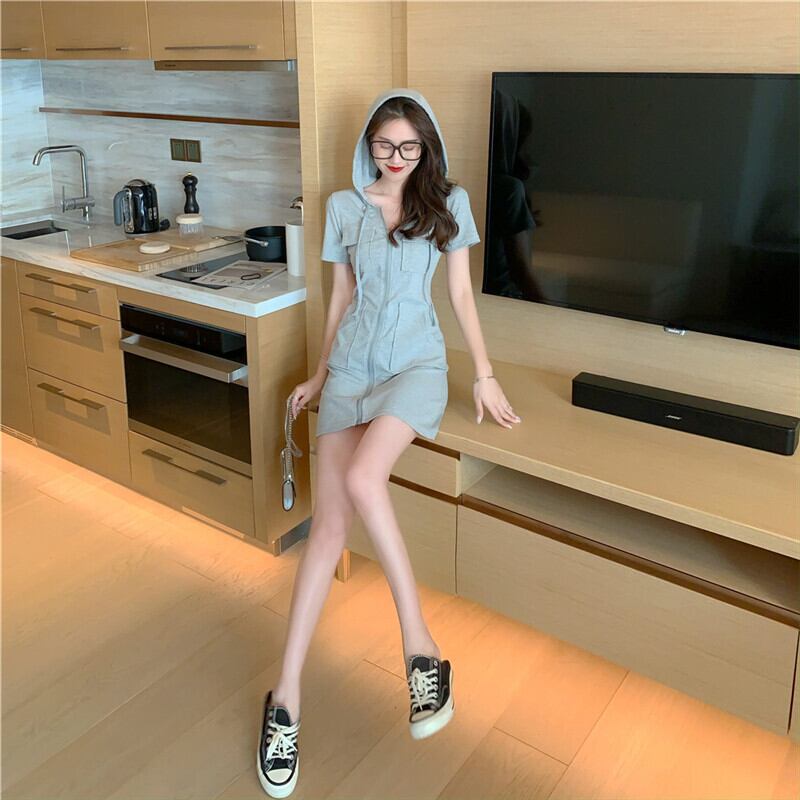 気質ドレスの女神ファン2020年新夏半袖セータードレスカジュアル薄めフードAラインスカート 1号婦人35574175705