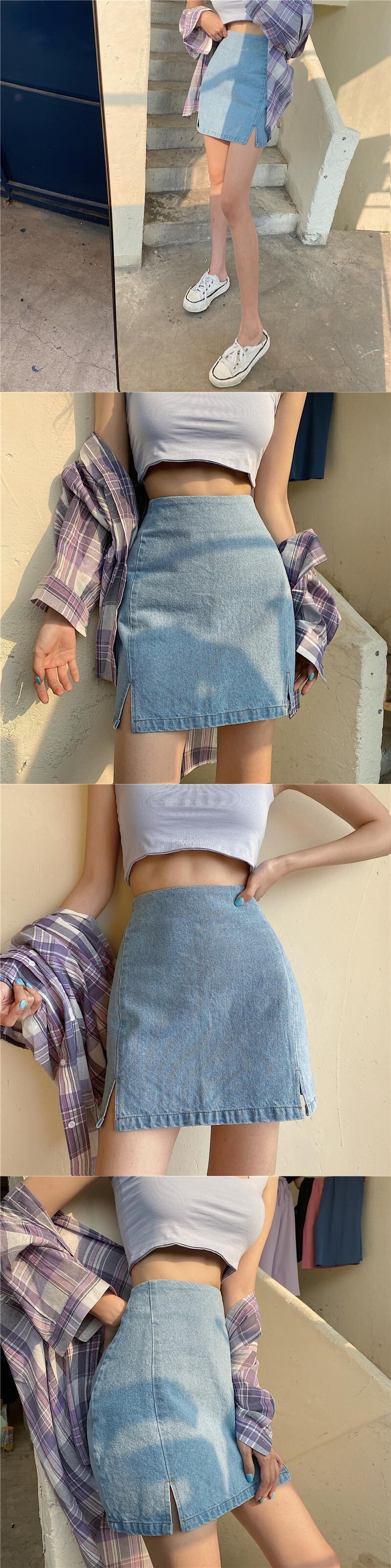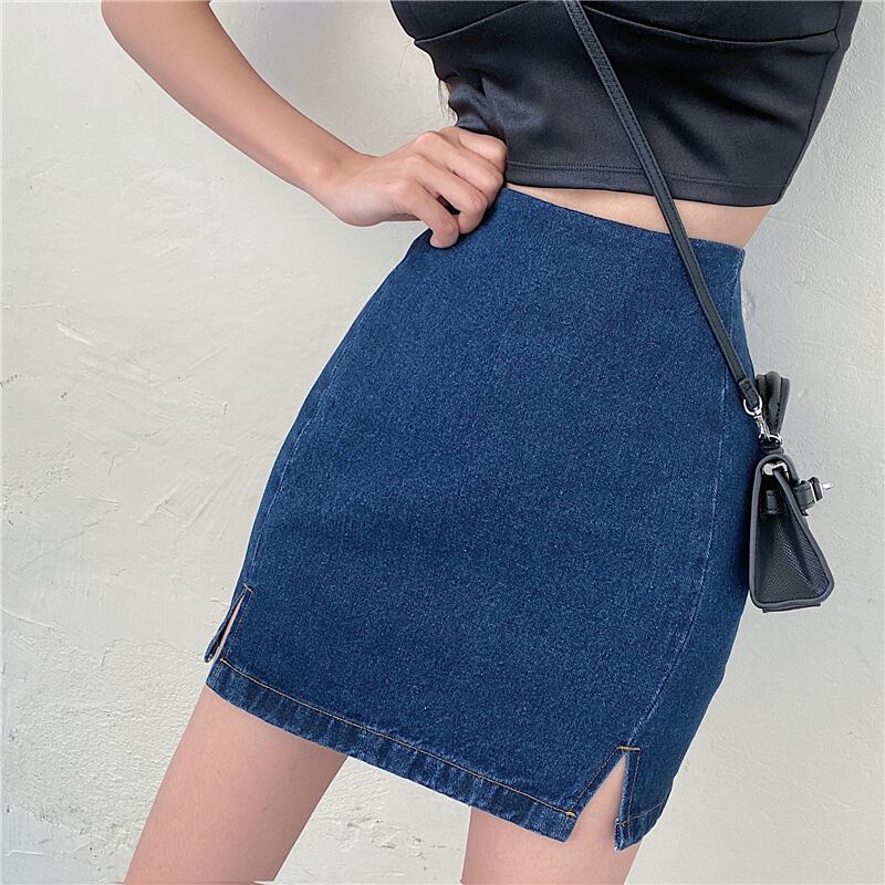 夏の新作レディースレトロハイウエスト細いAラインスカートデニムスカート学生オールマッチスプリットショートスカートタイド 1号婦人40997157718