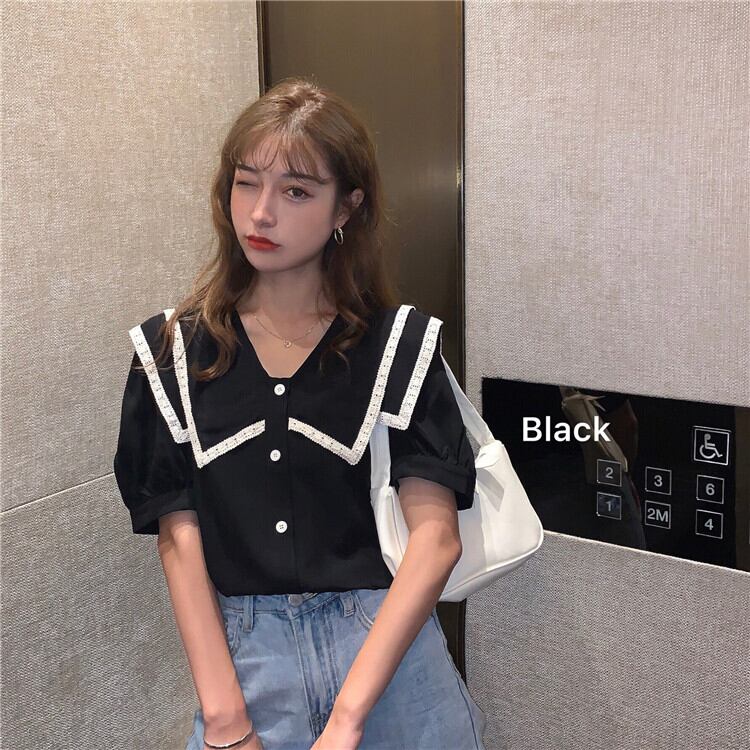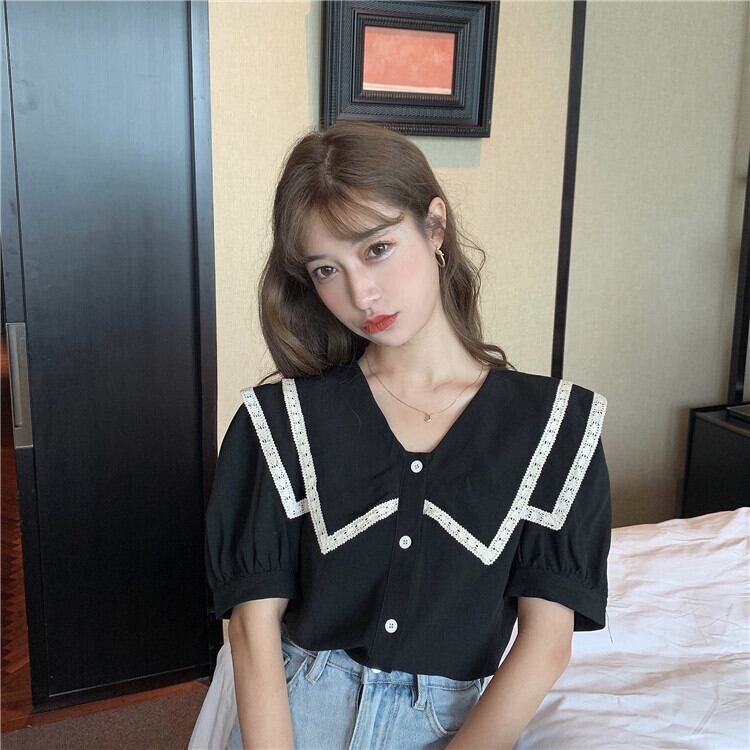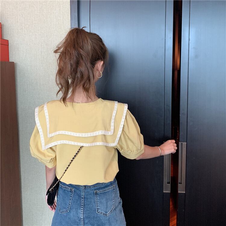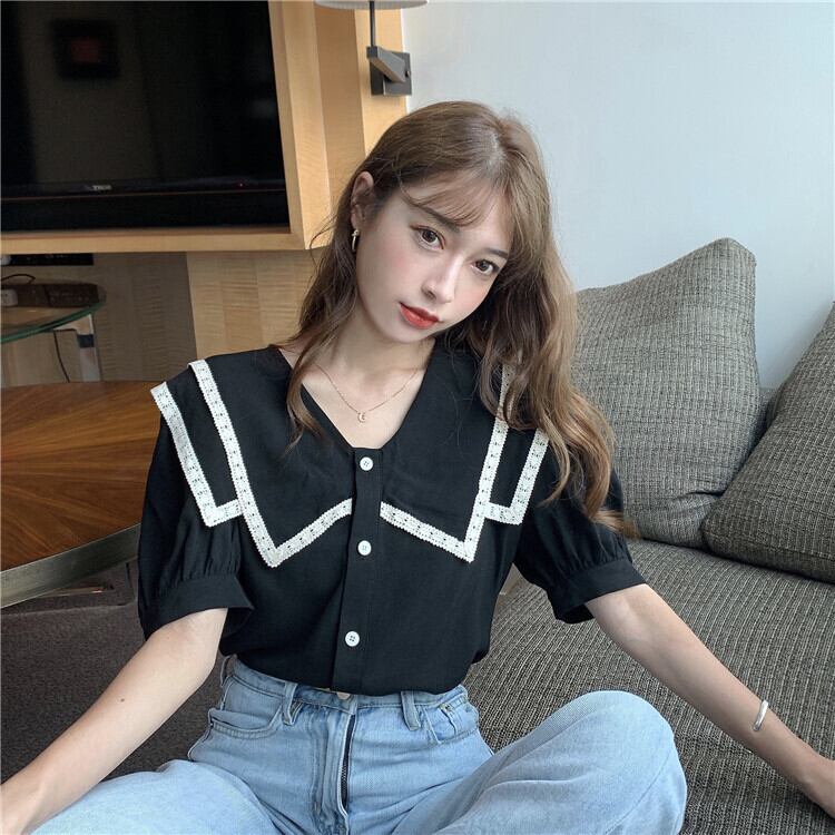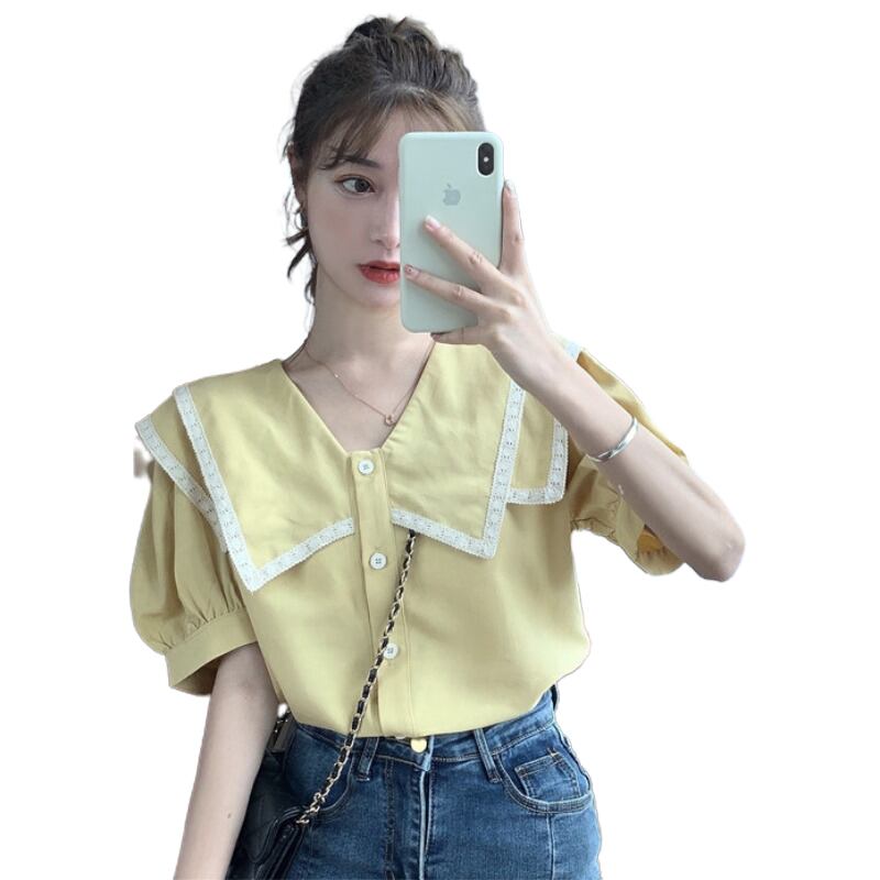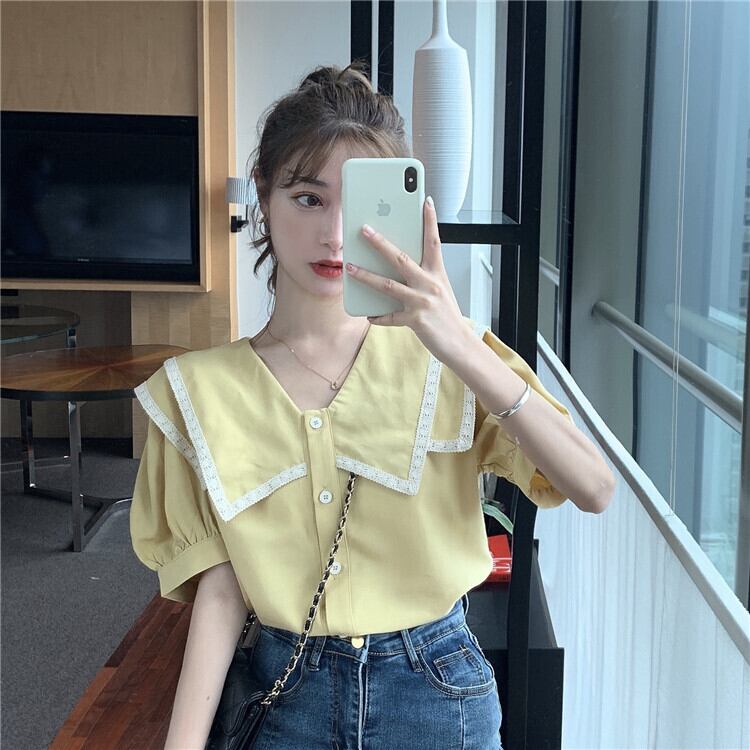 2020年夏の新作カレッジスタイルデザインセンスバブルスリーブダブルレイヤーラペルルーズ半袖シャツトップレディーストレンド 1号婦人47677805919