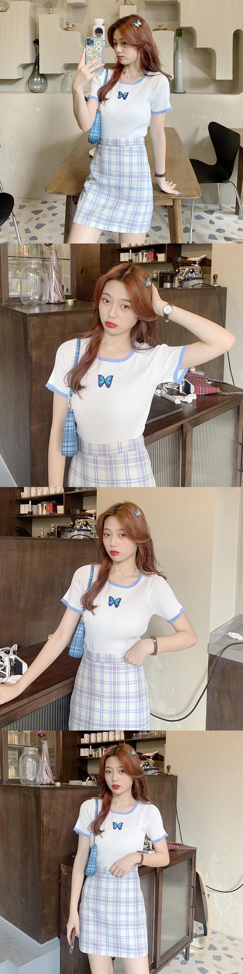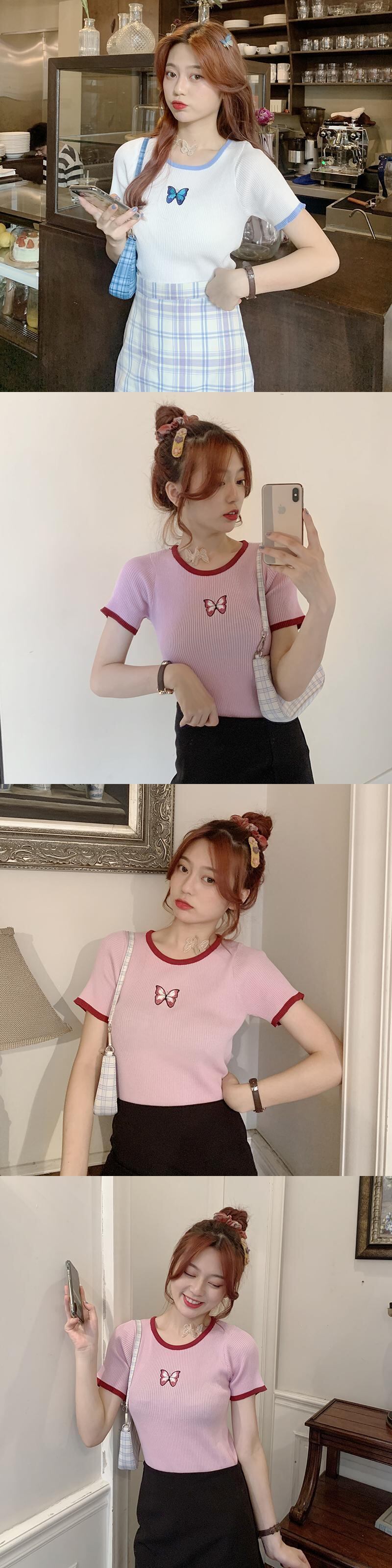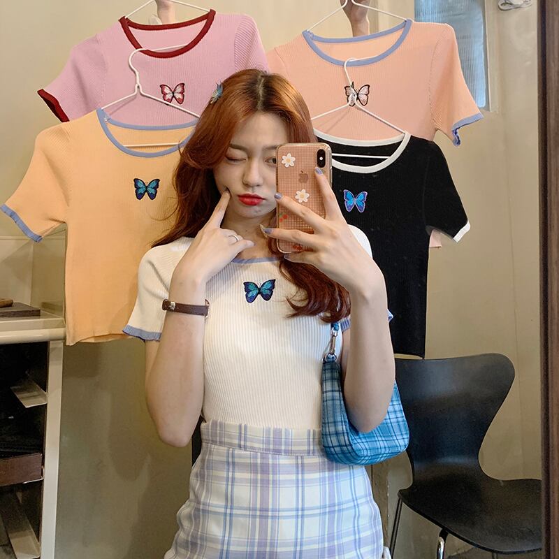 2020年夏のスリムな痩身バタフライ刺繍ショートトップスオールマッチ半袖Tシャツ女性インタイドの新バージョン 1号婦人35071819598