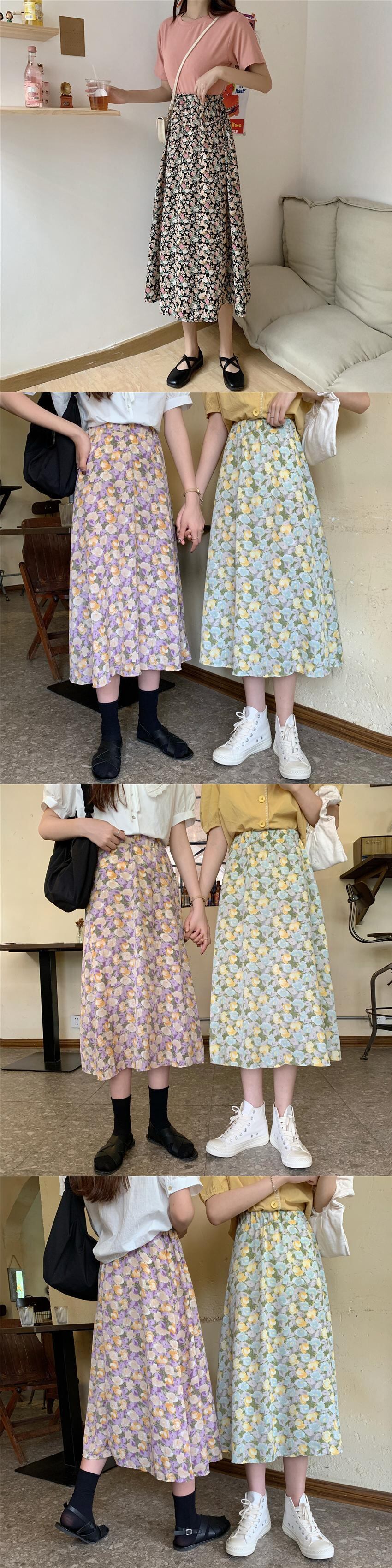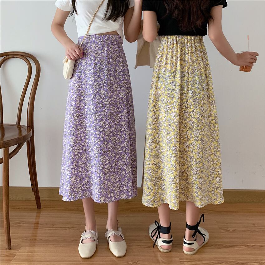 ハーフレングススカート女性2020年夏新しいレトロルーズワイルドハイウエストスリミングフレンズフローラルミドル丈スカートトレンド 1号婦人82273924293