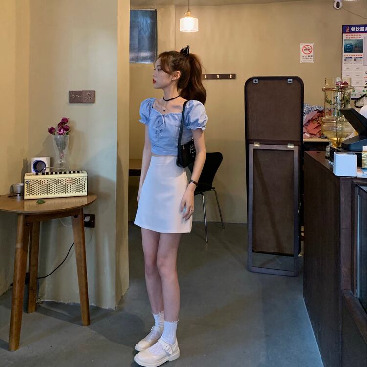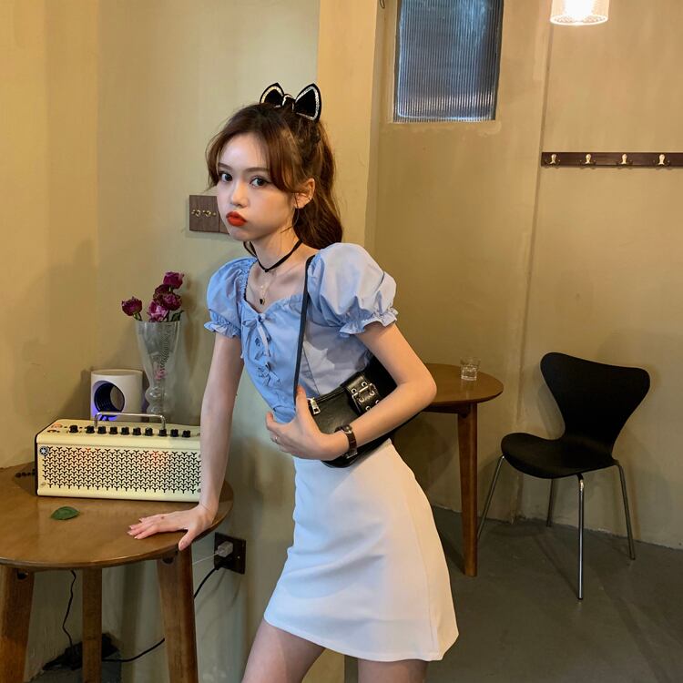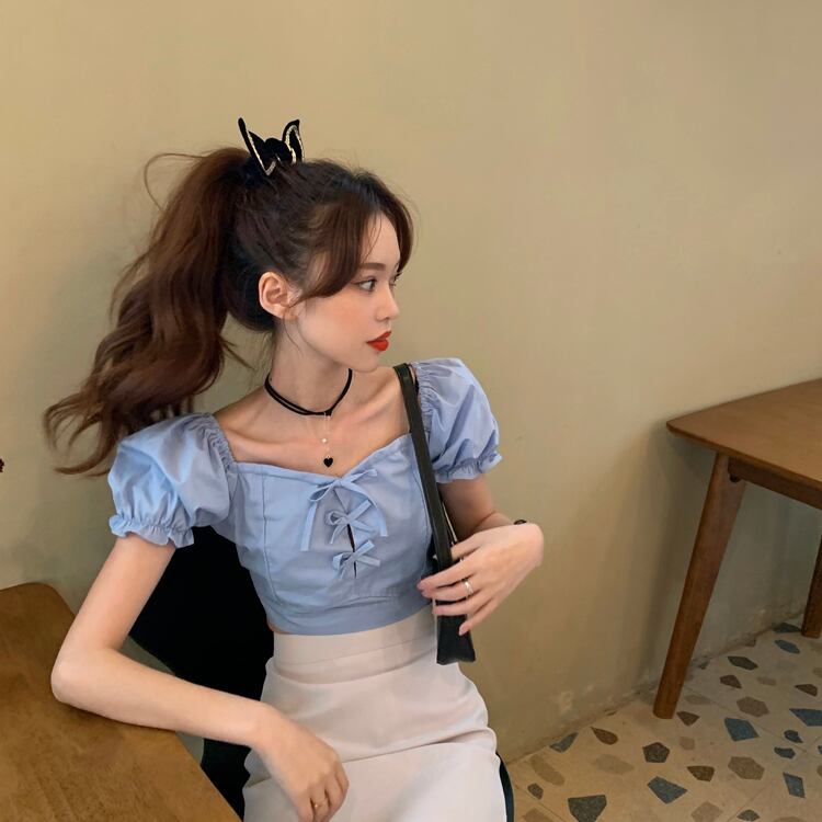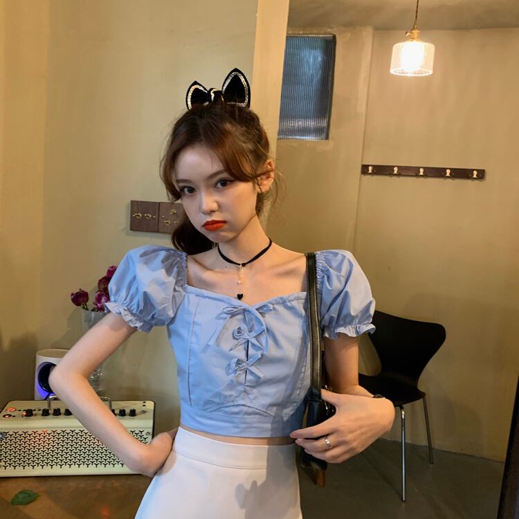 優しいレースアップパフスリーブレディースシャツ2020年夏のニュースタイルデザインニッチショートトップ 1号婦人50435597428