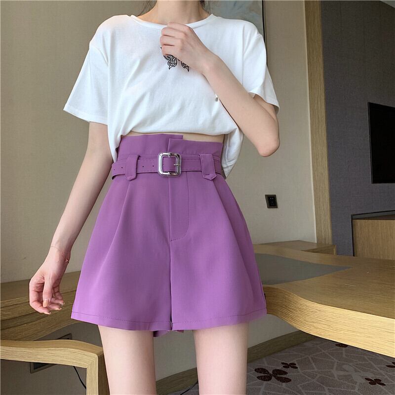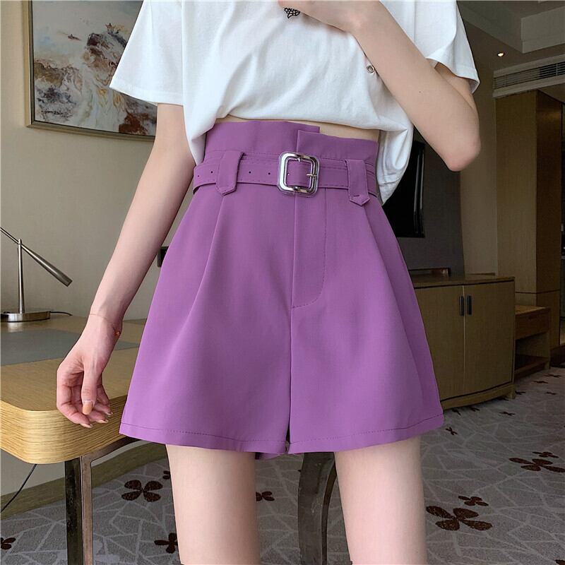 レディースカジュアルパンツ、ワイドレッグパンツ、ハイウエストドレープ、サマーニュースタイル、ルーズ、パープルスーツショーツ、パンツ 1号婦人19657498082