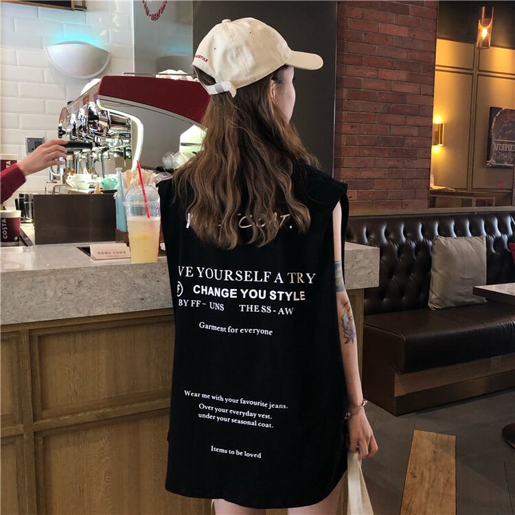 ネット赤外線ウェアルーズノースリーブトップ女性2020年夏の新しいファッションレター印刷BFカジュアルスポーツベスト 1号婦人83102572500