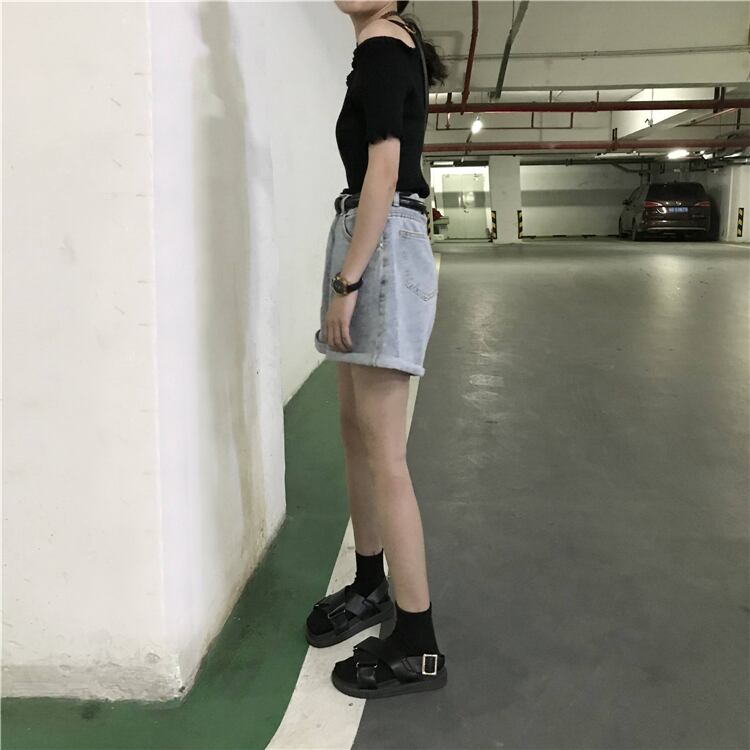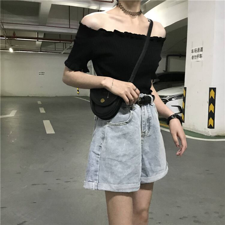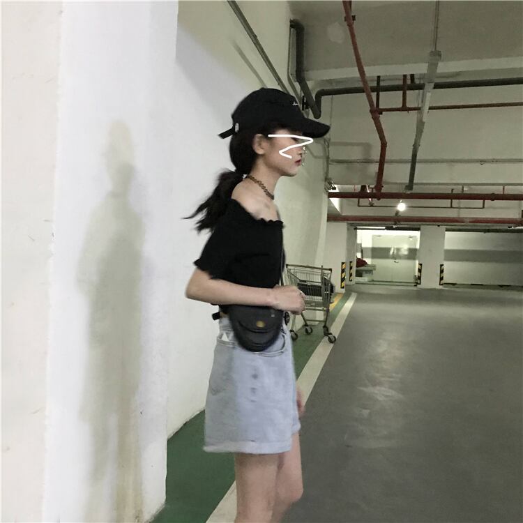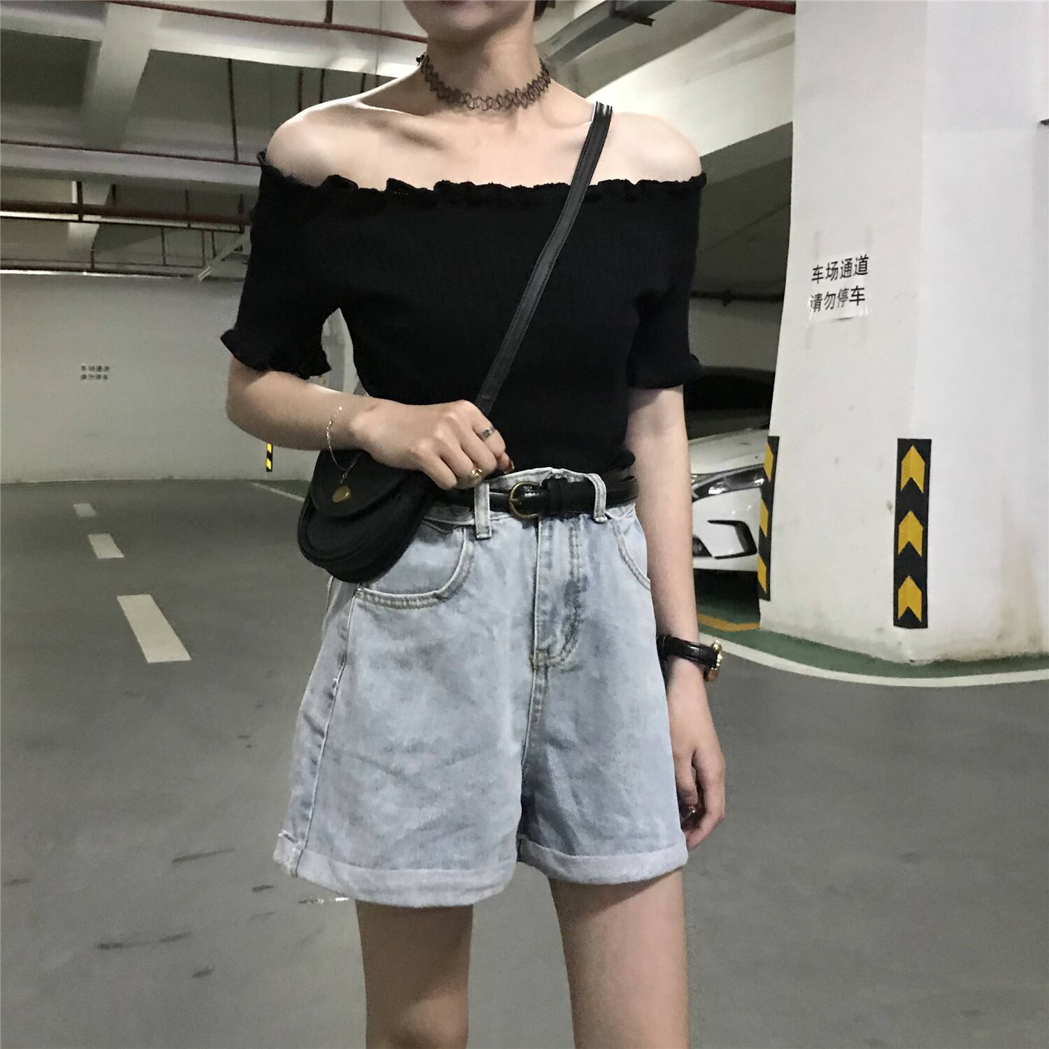 2020年夏の新しいフレンチセクシーなワンショルダートップスリムスリミングショートブラックニットTシャツ、木製の耳付き 1号婦人41835527138