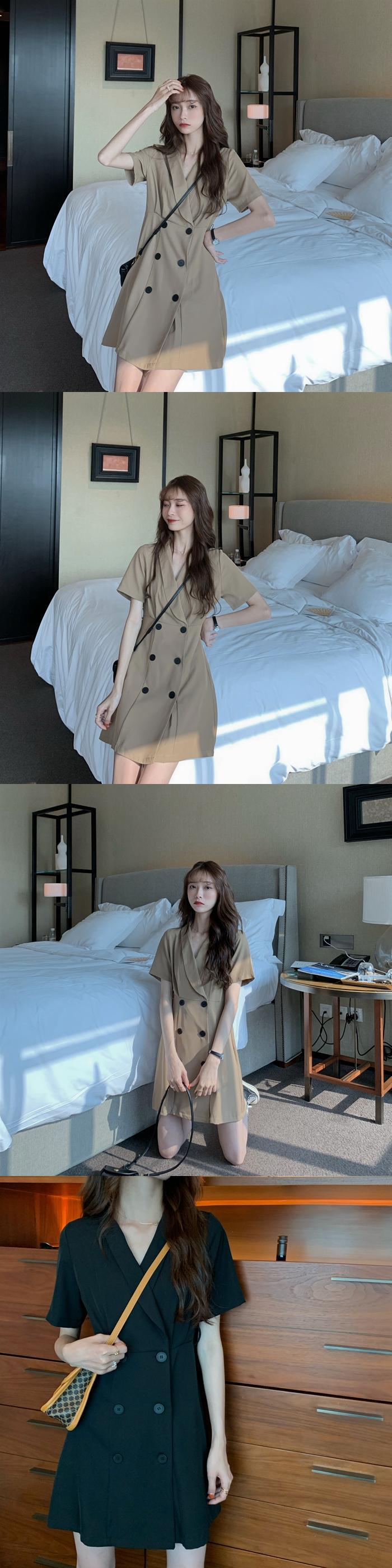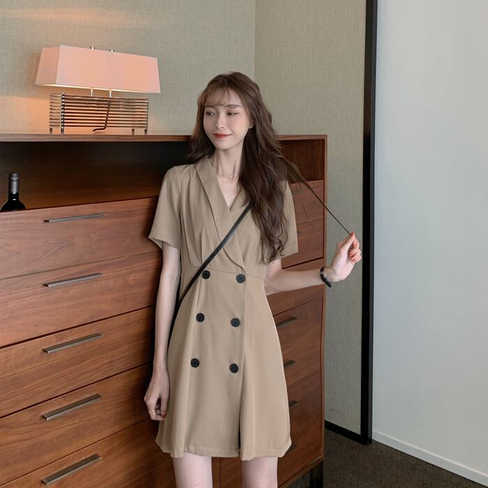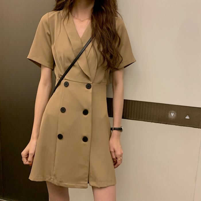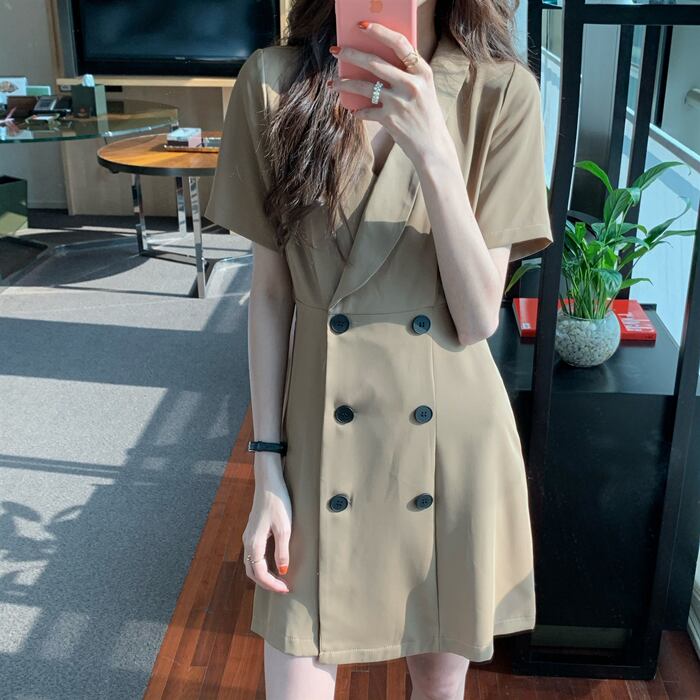 2020年夏の新しい女性フレンチレトロウエスト細いAラインスカート気質スーツ襟半袖ドレス 1号婦人45527221194