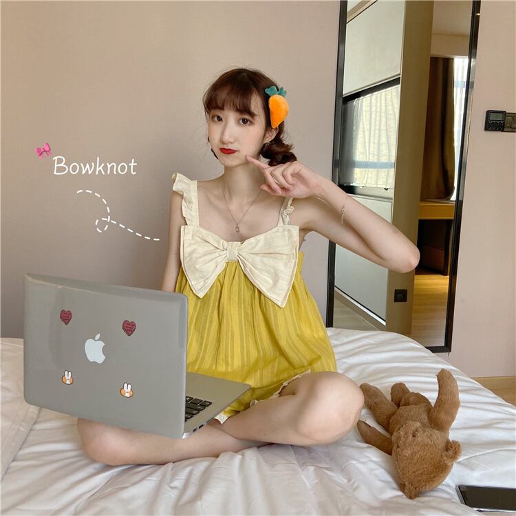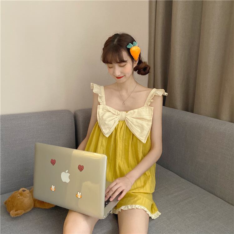 2020年夏新作ルーズキュートボウロータススリーブパジャマカジュアルパンツホームサービスツーピーススーツ 1号婦人76968928142